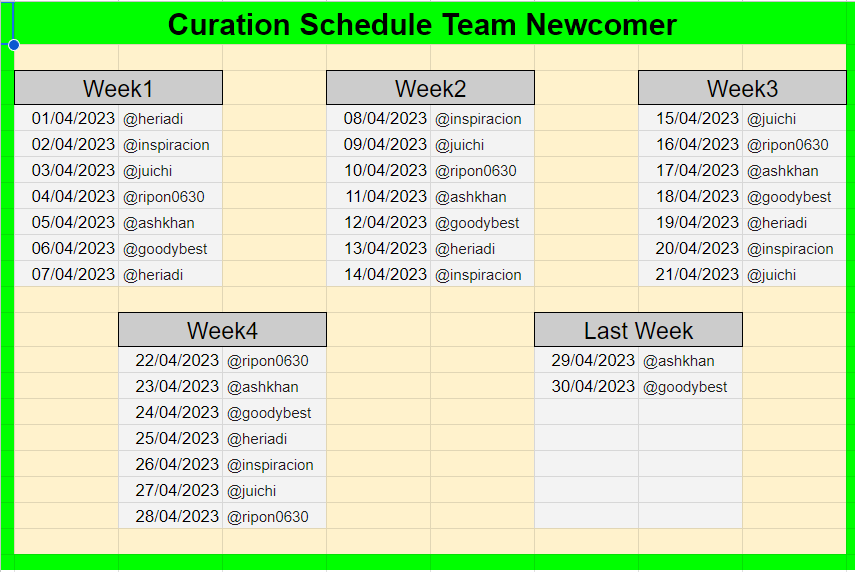 So that the curation schedule will be fair for everyone, we will carry out a continuous round of 6 days, which will be repeated over and over again until the end of this month. Therefore we do not have fixed days. In this way we solve the possible problem of covering an additional day of the week.