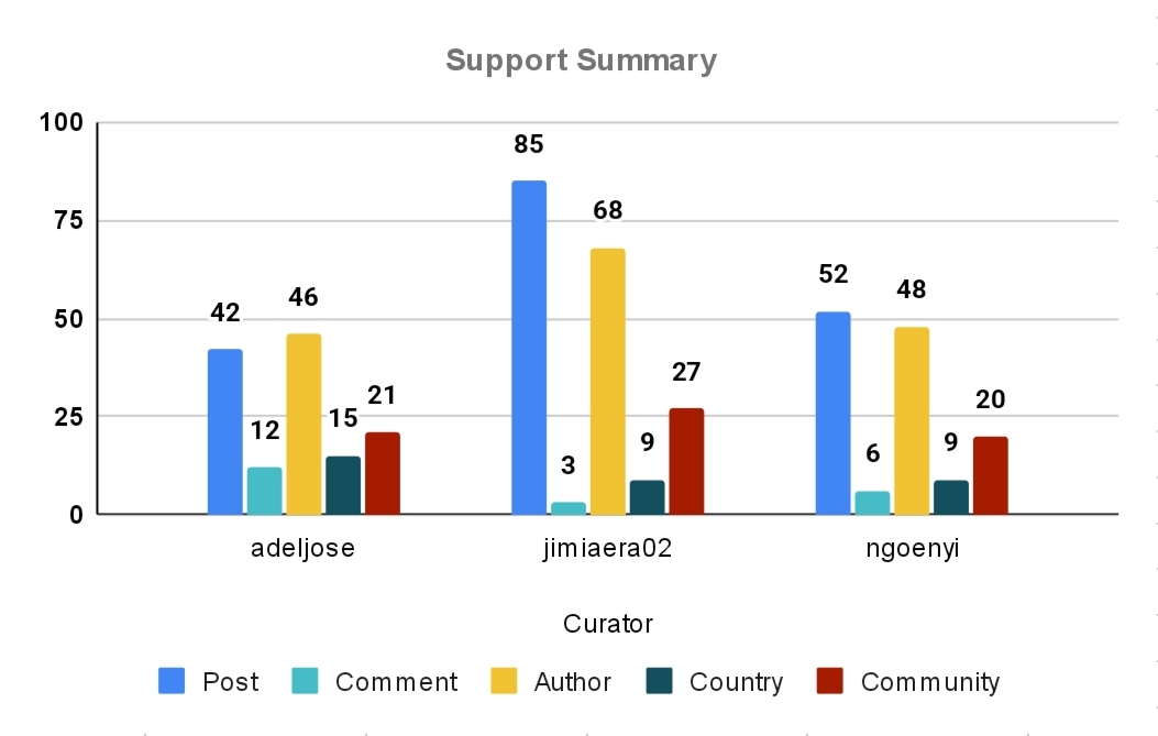 From March 15th to 21th, we managed to support 200 posts and 21 quality comments. Below is a summary of each team member's individual work. It's worth mentioning that during this period, we supported 140 users, 36 communities, and 19 different countries.