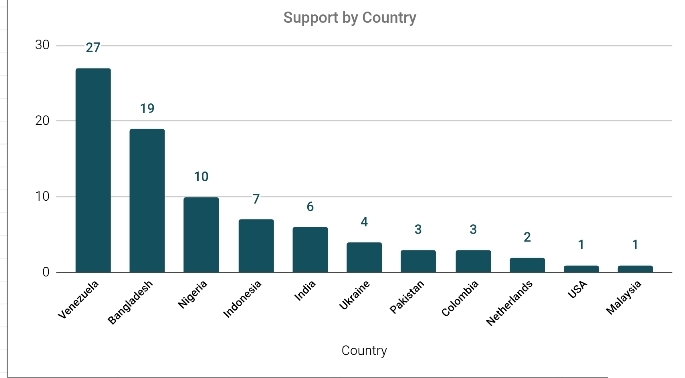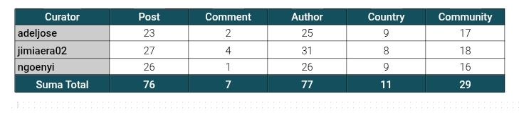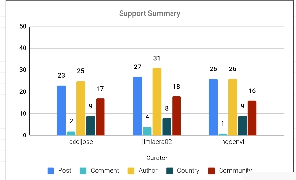 Below is the number of supports according to nationality that we gave using the account that was left in our custody which is @steemcurator06