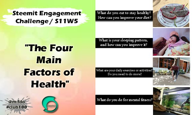 In this post, the author talks about the Four Main Factors of Health. The author highlights the importance of balanced food in her diet, maintaining sleeping patterns despite challenges, gaining knowledge through Steemit activities, and traveling for mental fitness as therapy for the mind. This post is highly recommended for health awareness, as it will help the readers know and understand a lot about health factors.- @ ripon0630 |