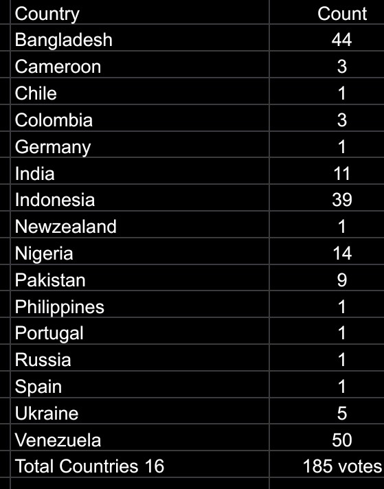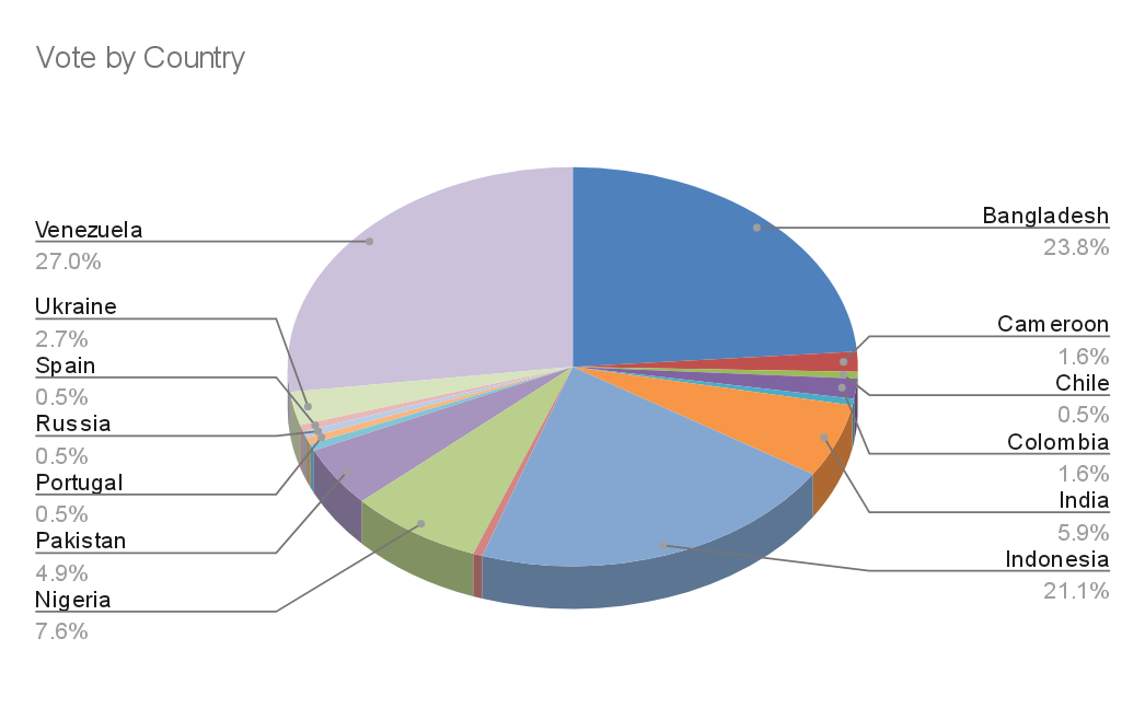 Distribution of votes by country