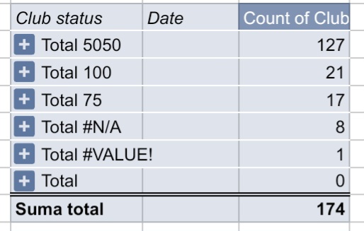 21 users of #club100, 17 users of #club75 , 127 of #club5050 and 8 users of #noclub