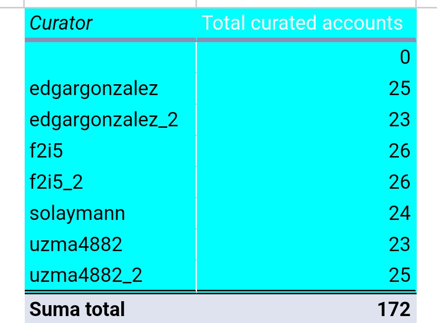 Here is you can see that The screenshot of google sheet given above shows you our Curator's workout. As a team, we have covered 172 Upvotes overall by deep analysis of their sharing quality contents. Each of whose posts were distinct and well presented.