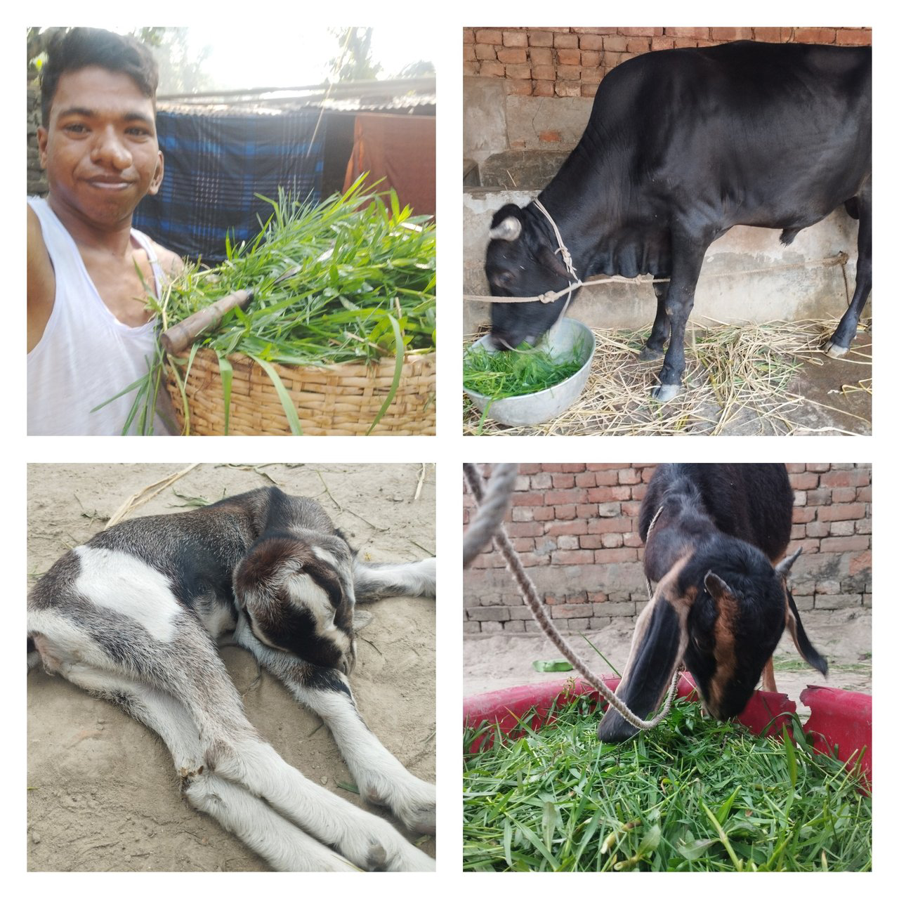 Taking care of animals means a lot of care and responsibility, the author tells us about his day, where he spent most of his time dedicated to giving fresh grass to his cow and goat since this brings great benefit to them, since if he takes care of them and maintains them At some point they will be able to obtain quality milk which will be for their consumption!