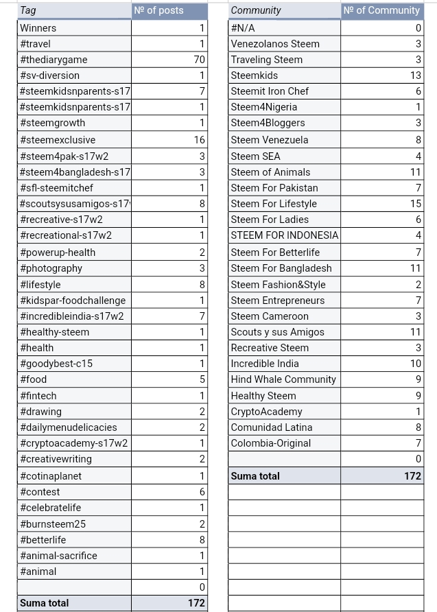 We cover as many Hash tags as possible with unique content, without being restricted to any one hashtag. Thediarygame is the most popular, and it's closely followed by the steemexclusive tag, weekly challenges, and contests and Steemit enagement challenges as well. As you seen that there are 72 total tags of thediarygame shared by active Steemians belongs to different countries and communities.