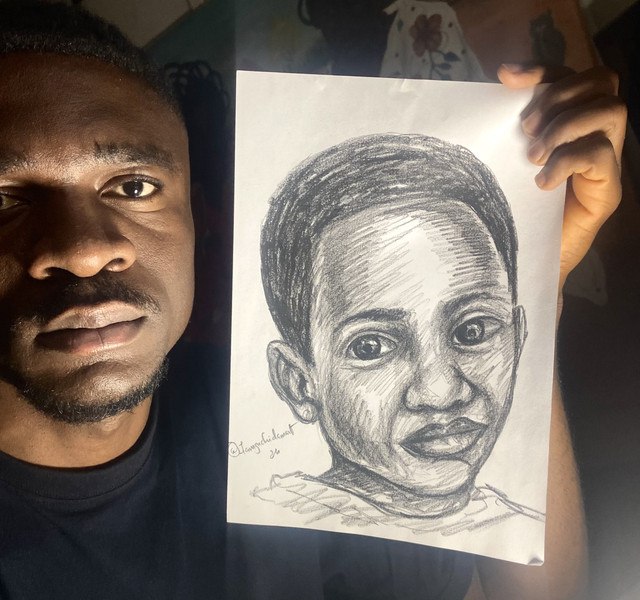 Between disappointment and willpower, between childhood dreams and present reality, the artist reflects while presenting us with a charcoal self-portrait
