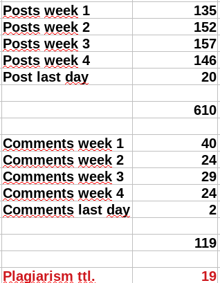 Another sensitive point for me is the plagiarism that has been detected. We have left a message for the authors of each of these posts explaining the lapse and asking them to desist in future. The problem seems to have been spreading for some time, and there are various initiatives against such abuse. But, if I have understood correctly, is it not possible to make such proven plagiarised content invisible? Well, within a community, but not Steem-wide? I think that would be an overdue feature - and the responsibility for it belongs in the hands of some kind of arbitration board. Again, the authorised representatives could rotate, much like the Curators....