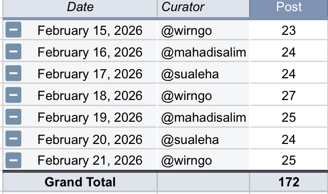 We made sure our team work followed our curation guidelines. People who followed our curation guidelines received support from our team with no discrimination .Our third week report is strictly focused on the curation we carried out with SC08for the past seven days.Which runs from the 15th to 21st of February 2026. In the below section I will be giving a summary of our weekly statistic with SC08 account.