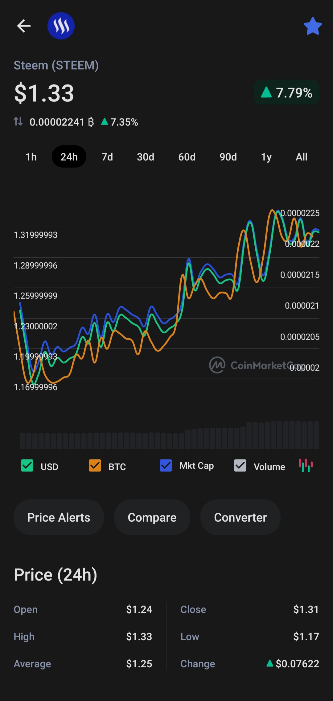Steem opened @ $1.24 , went as high as $1.33 also went as low as $1.17 and closed at $1.31..great day if you ask me..