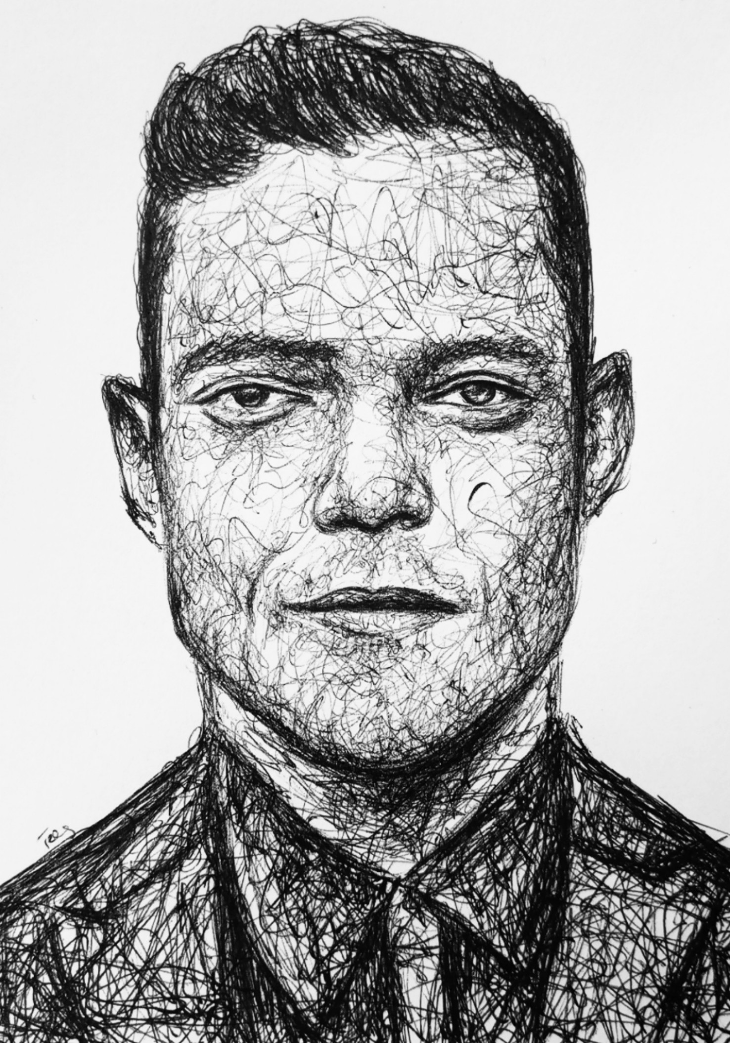 Hello Friends. I wanna share with you all some cool digital editions of my scribble drawing of the famous American actor, Rami Malek. These digital edits gives somewhat life to the original drawing by the addition of colours and blends which my traditional ink scribble technique doesn't provide. I also realized some people following my art prefer this form of coloured art to monochrome for their home decorations. So for some of my best works, I'll be making a few prints that a digitally modified for sales along with the original piece.
