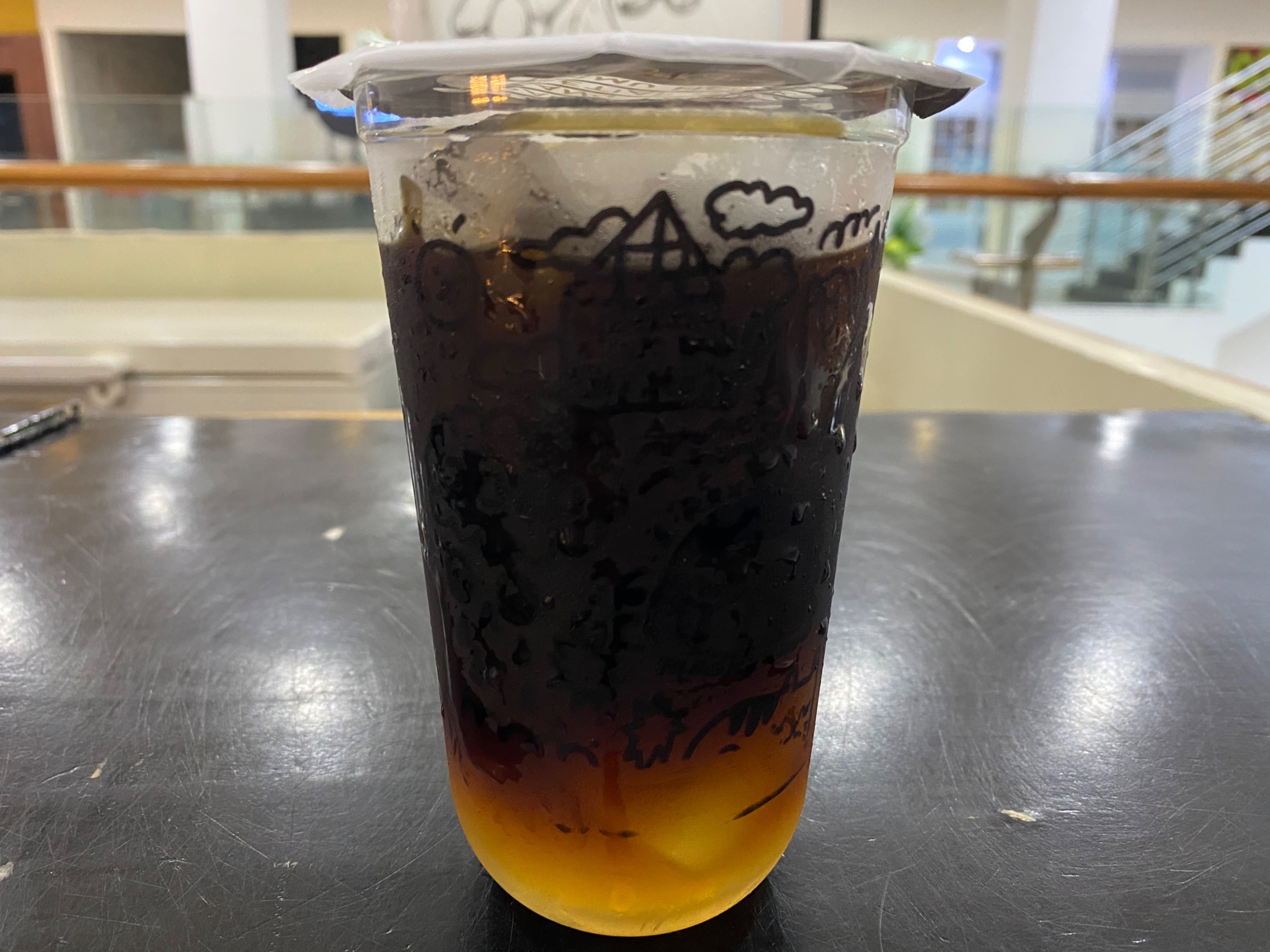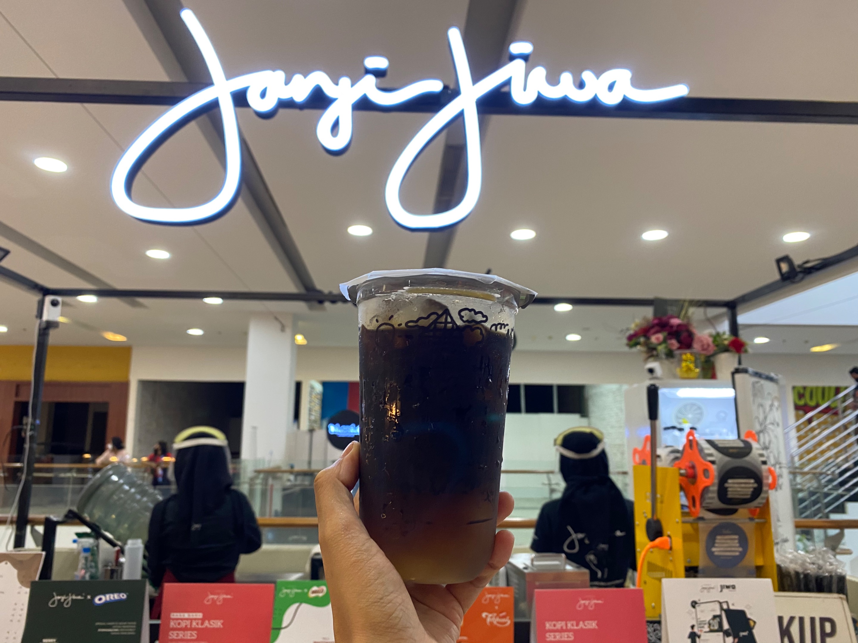 Saya melihat ada outlet kopi JANJI JIWA. Tanpa pikir panjang saya pun mengunjungi outlet ini dan membeli satu cup kopi dingin.