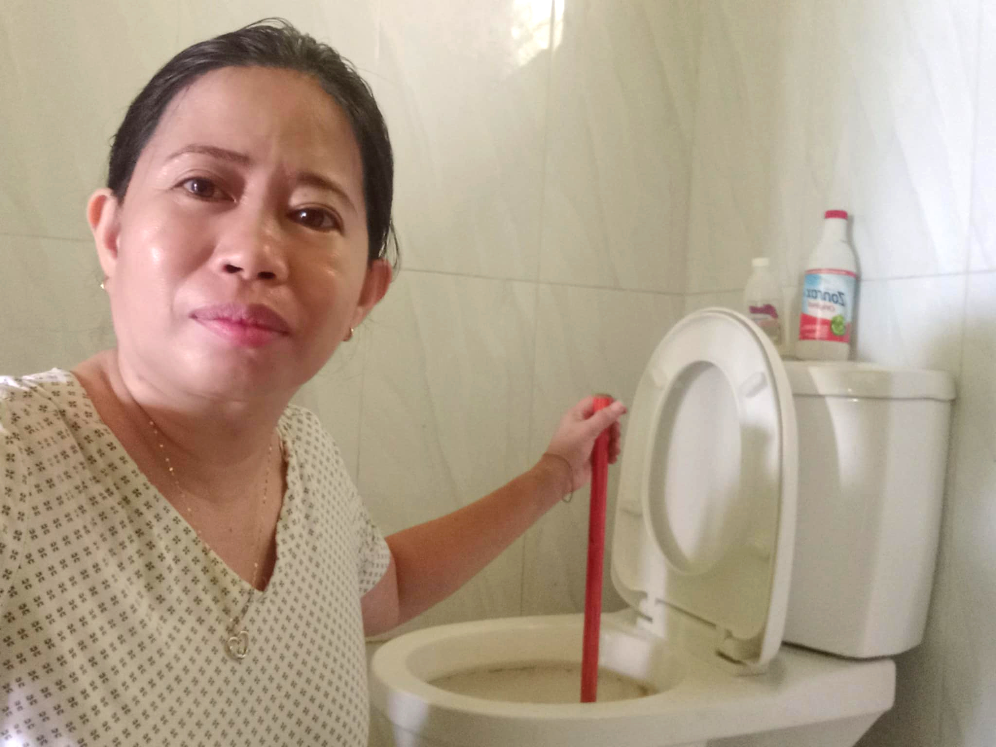 I was busy cleaning the comfort room when my husband took over. See... I made the right move bringing him... the comfort room ended up super clean! I told him, “That’s what you get for marrying a teacher, now no escape, you're cleaning too, ha..ha!