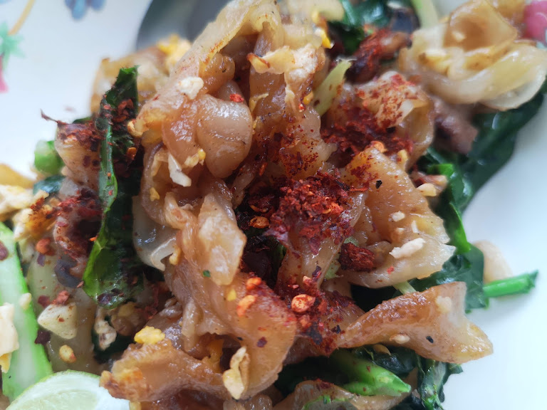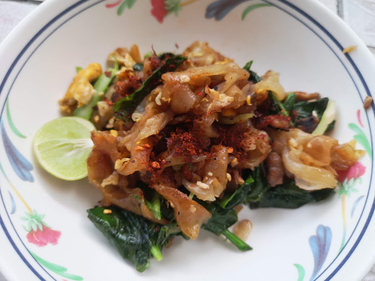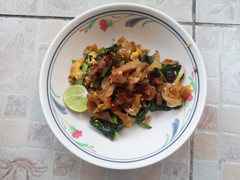 That's it. Let's go quickly about my food item today, which is Pad Soy Sauce that I would like to present. Just read the picture. It might be a little small. Sometimes it's not. I didn't take any photos during the cooking process. I didn't take any more, just when they were finished scooping them into a bowl, I brought them to serve to me in front of the house and finished eating them today. In the evening, after finishing taxes for the day, we invite the family to exercise together by hitting the battery. Exercise together enough that it should be close to an hour and a half. Yes, I play with my daughter and I play with my wife. That's about it for my story today.