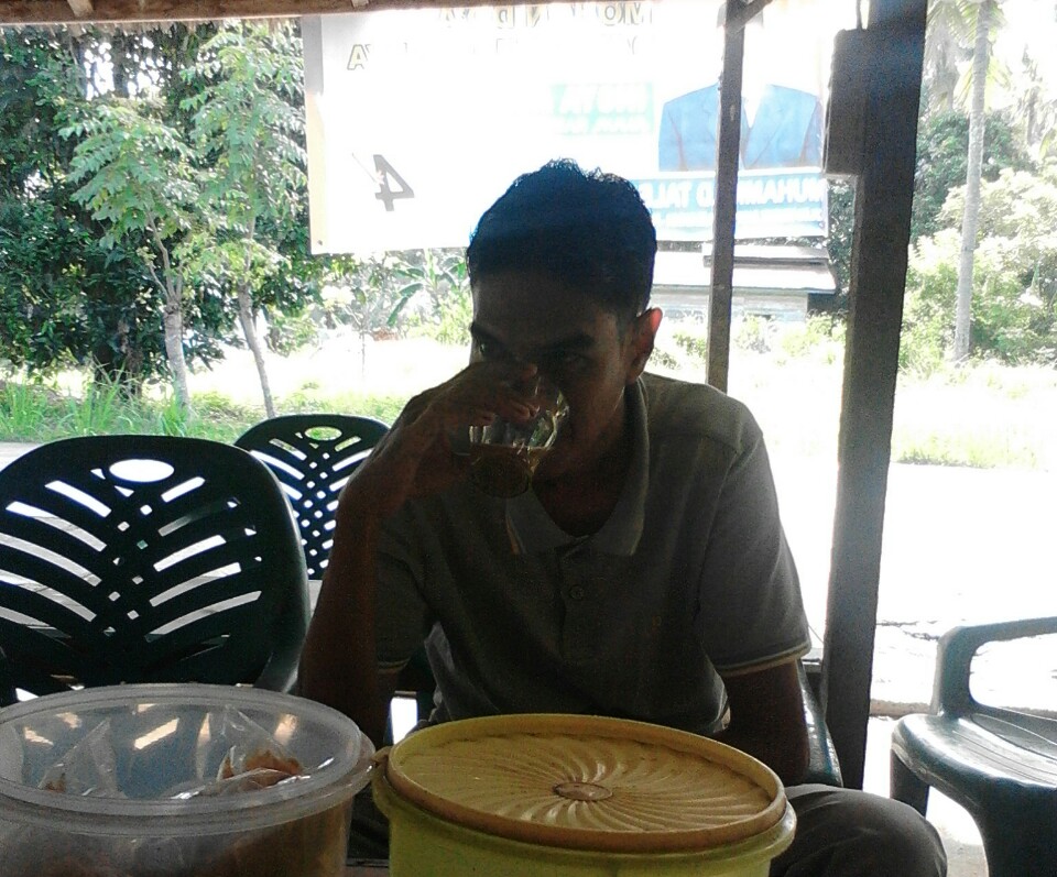 Nah, tadi pagi saat lagi ngopi bersama @salehjeck dan @hdnur08, iseng-iseng saya minta @salehjeck untuk mengambil gambar saya, yang saat itu sedang menikmati white coffee hot, minuman favorit saya pagi hari.