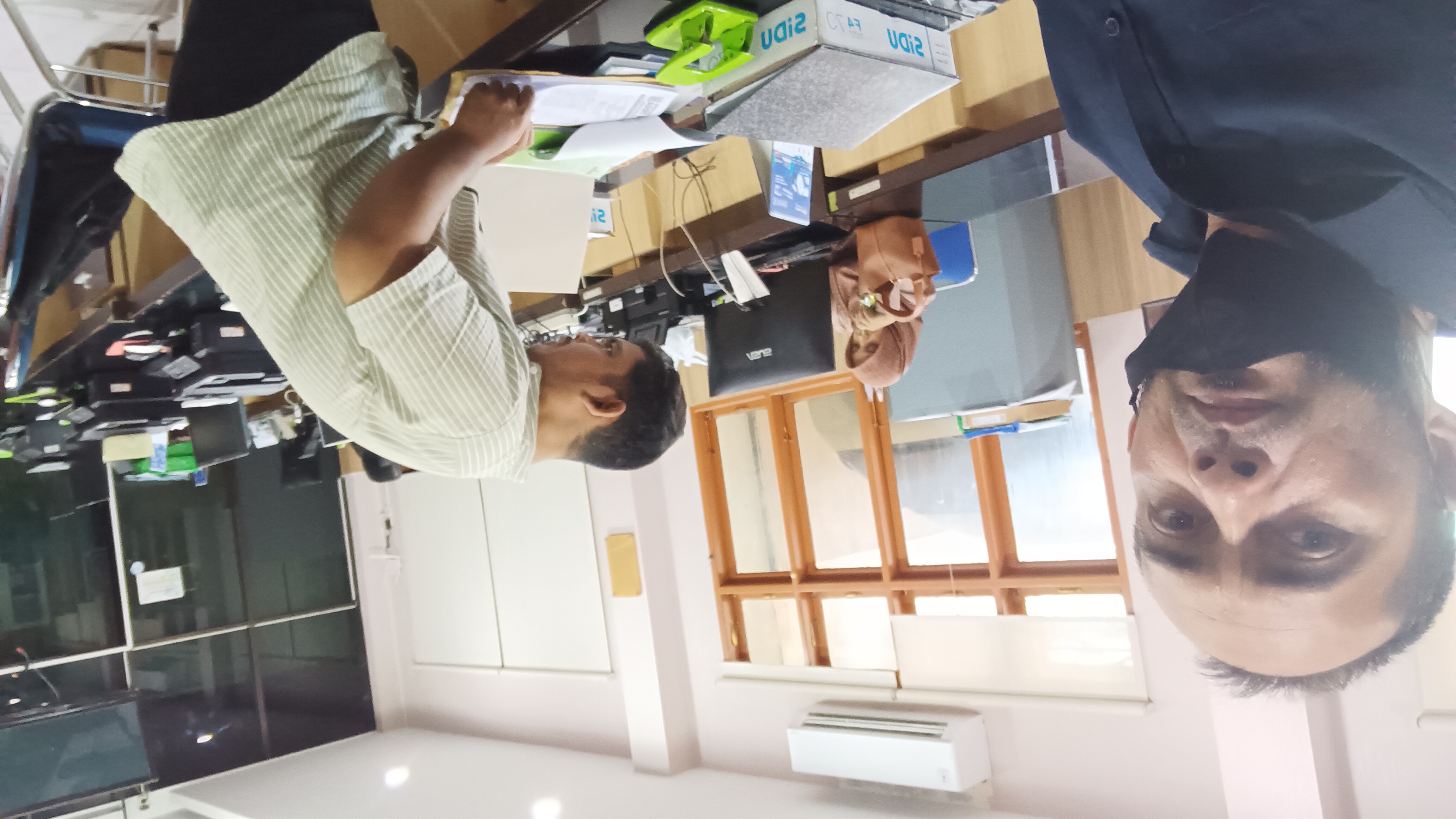 Di dinas ini saya bertemu dengan Muksalmina. Dia mantan pegawai Pemuda dan Olahraga Aceh. Sebelumnya saya sudah juga ke sini, tapi ruangannya kosong. Biasanya, dia memang masuk agak telat, karena ada tugas luar yang harus dituntaskan.