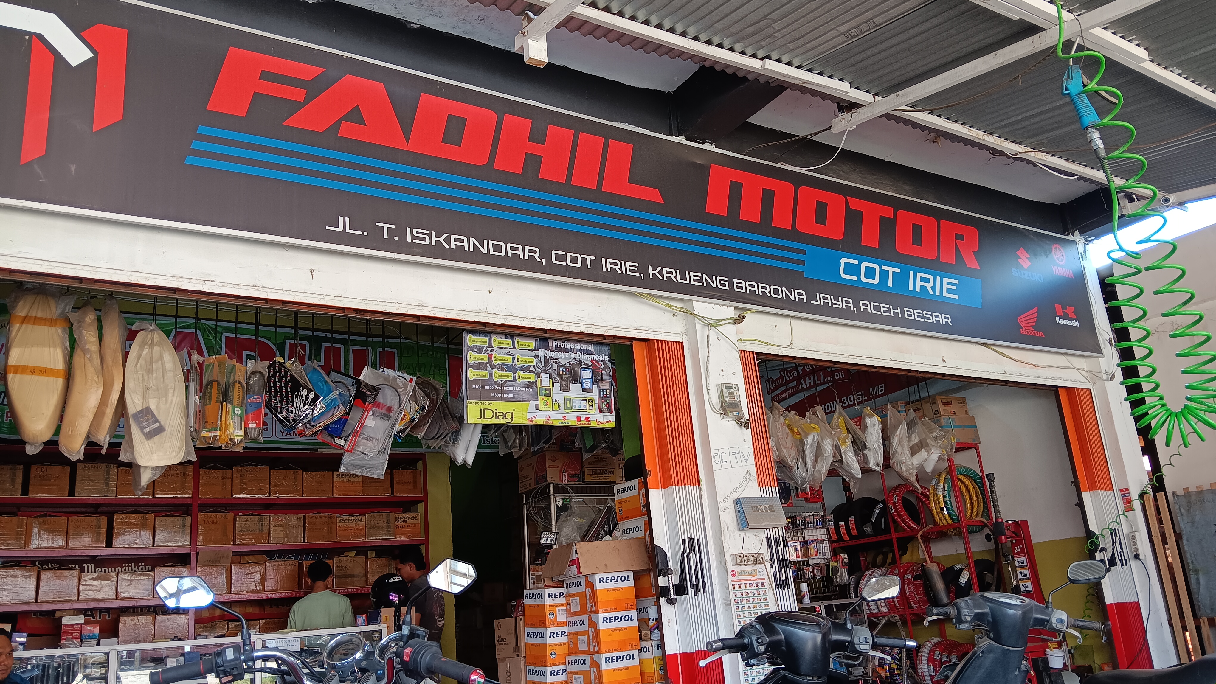 Fadhil motor ini ada di jalan T Iskandar, Cot Irie, Krueng Barona Jaya, Aceh Besar. Saya masuk ke sini setelah menjemput anak bungsu saya pulang sekolah di Ulee Kareng. Kawasan ini memang rute rutin yang menjadi lintasan lalu lalang saya selama ini.