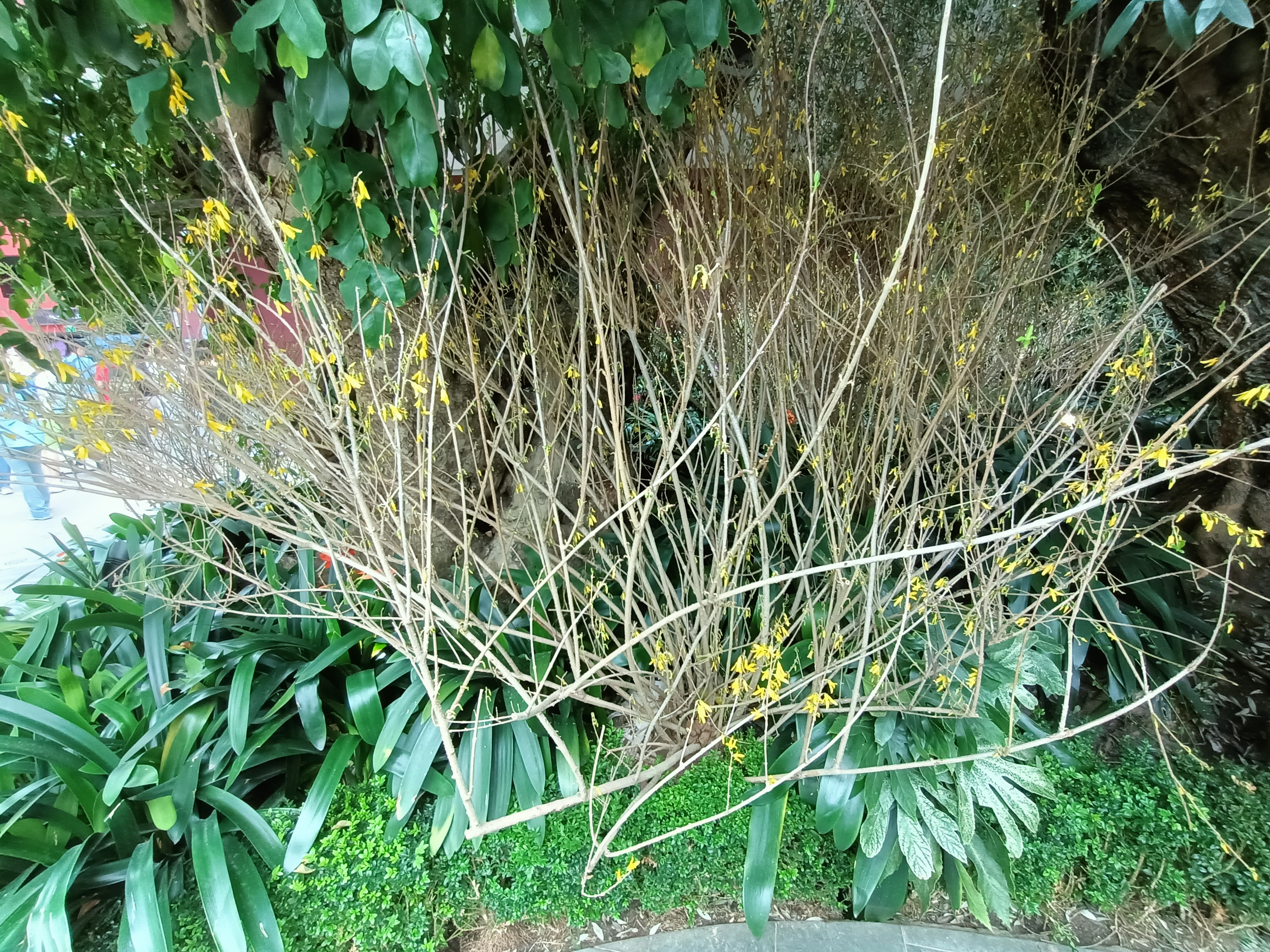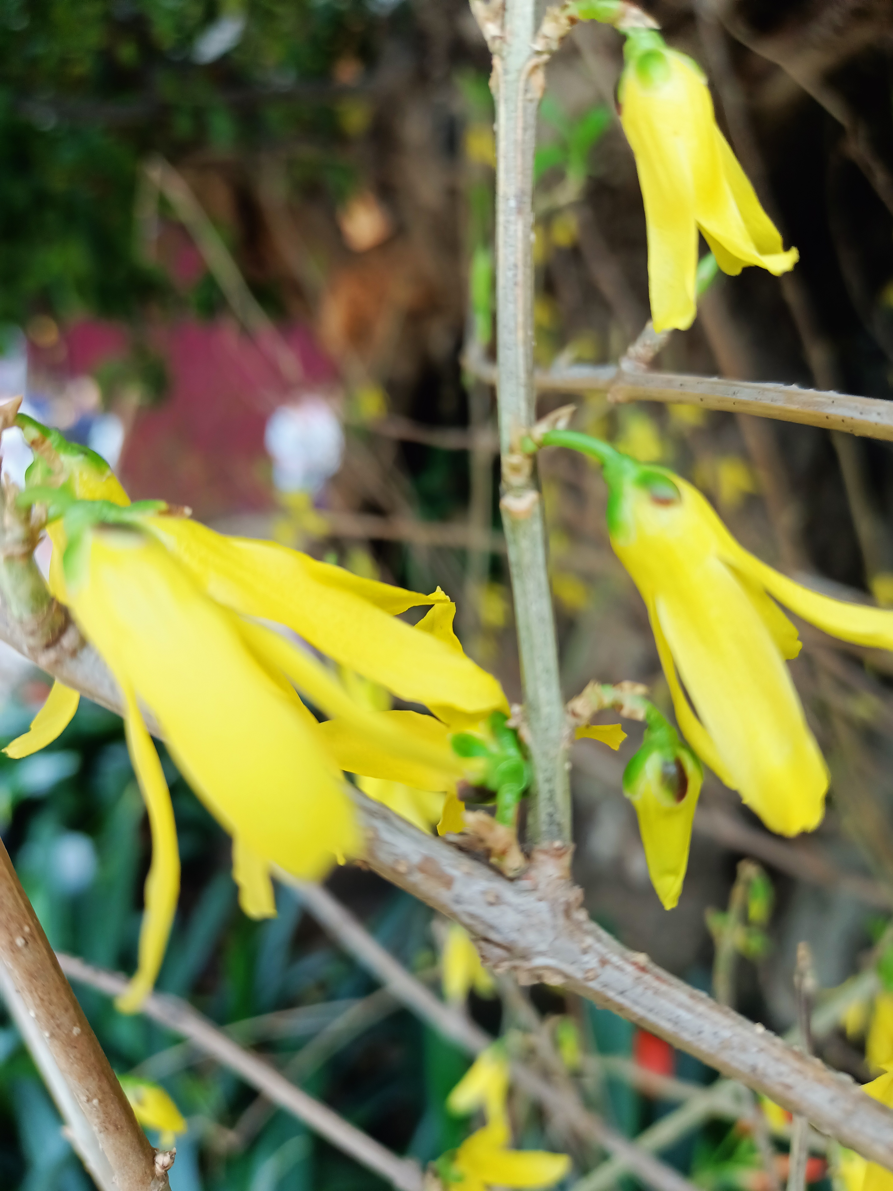 Forsythias are popular ornamental plants known for their bright yellow flowers that appear in early spring before the leaves emerge. The plant produces clusters of bright, bell-shaped, four-petaled yellow flowers along its stems. The flowers are typically 1 to 1 1/2 inches long. These become pendent in rainy weather thus shielding the reproductive parts.