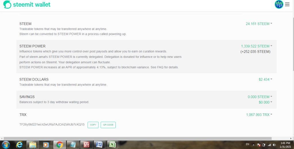 Jumlah ini adalah berdasarkan pantauan harga SBD, STEEM dan TRX pada Jam 12.55Tanggal 31 Januari 2021