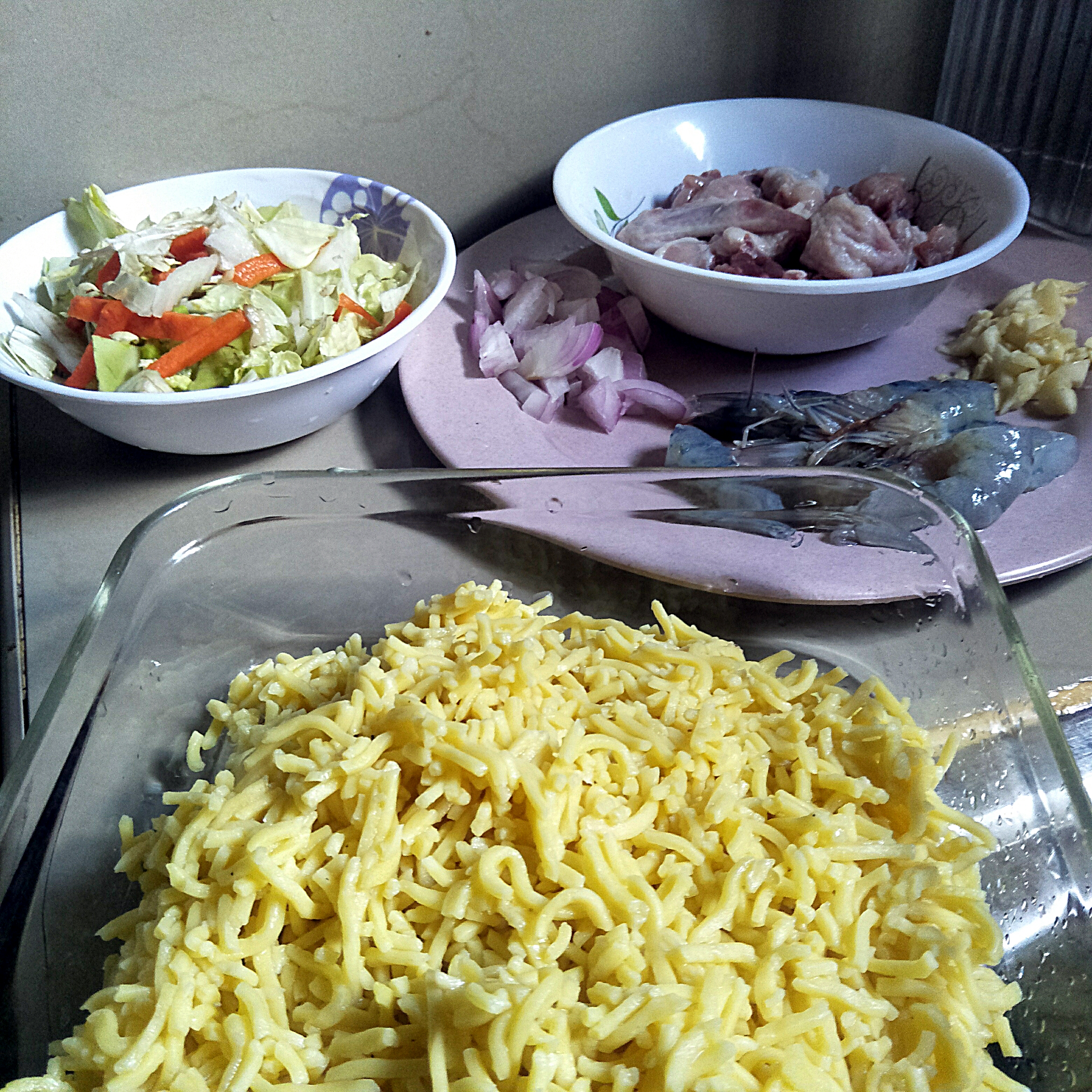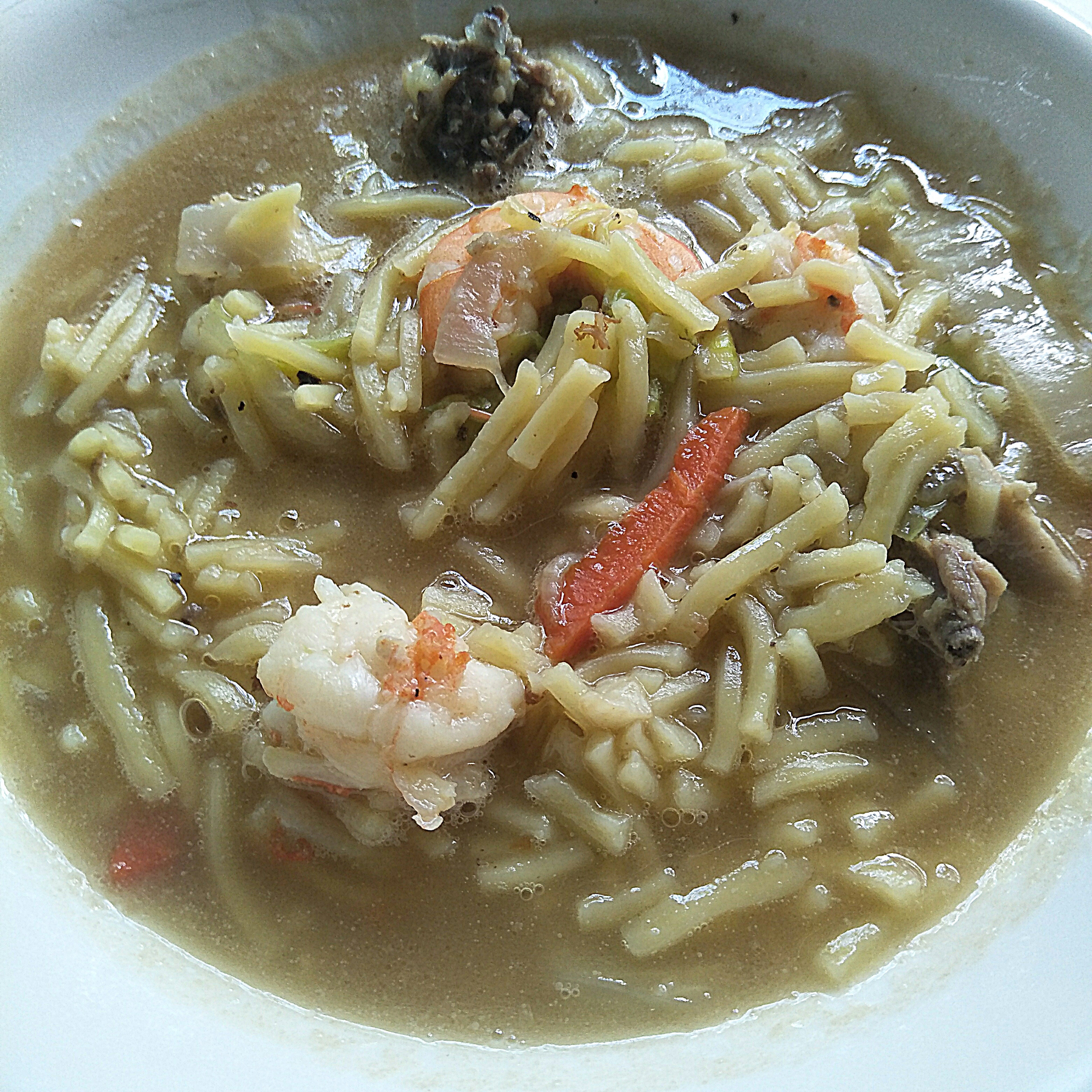 I prepared "Chicken Mami" a noodle soup but it's good to pair too at rice. Vagetable, chicken shrimp added to suit the taste.