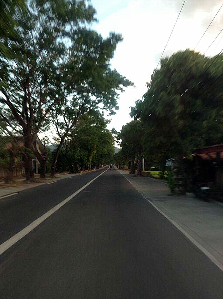 Going out to buy chicken food. It's 5:45 along the highway no much car on this time, curfew started at 6:00 p.m.