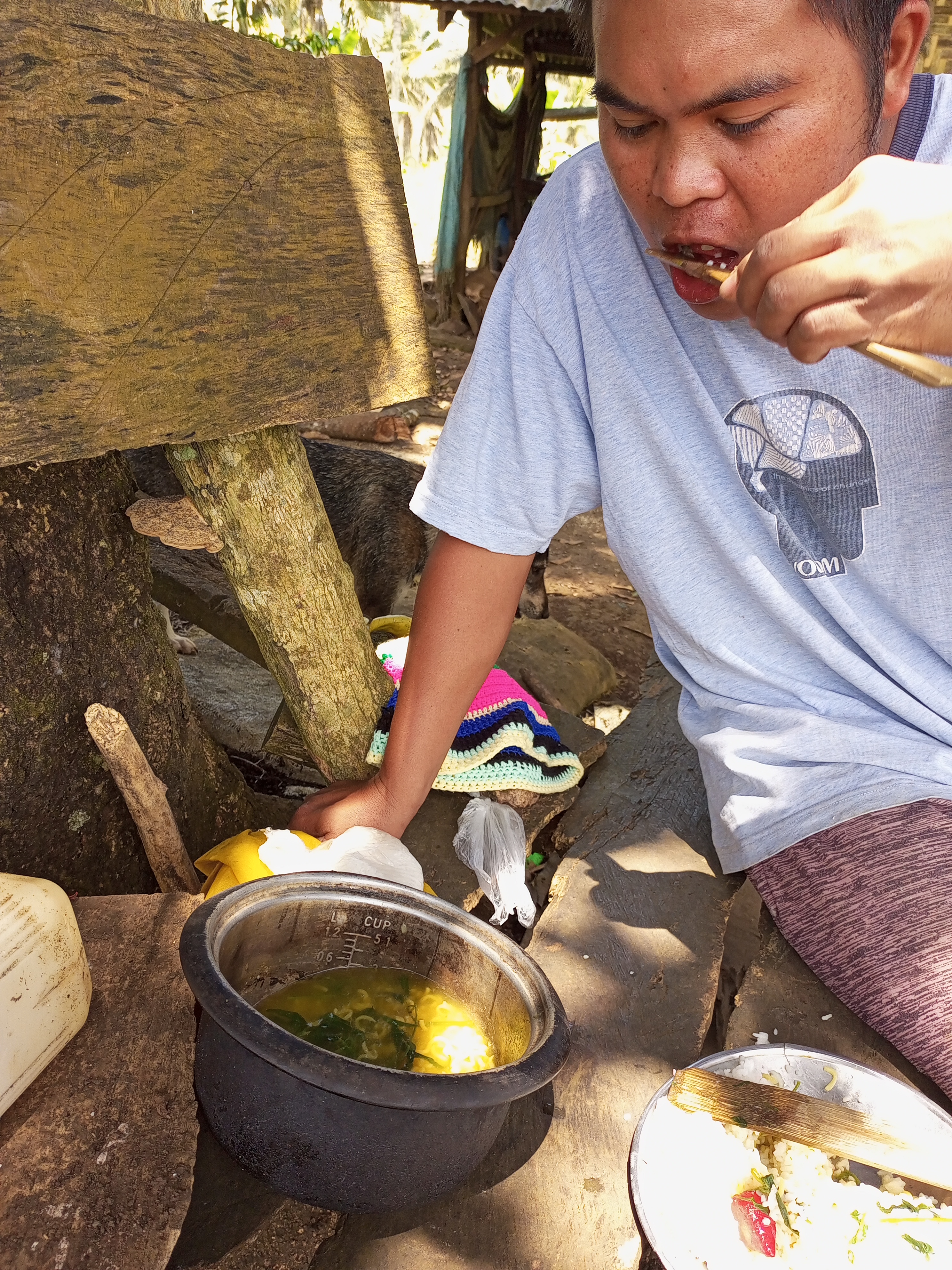 After our lunch, we had so much food cooked so we gave it to my mother in law's dogs so they can eat too; during Sundays my mother in law will not go to the farm because she goes to church and if we don't go there, the dogs will have nothing to eat.