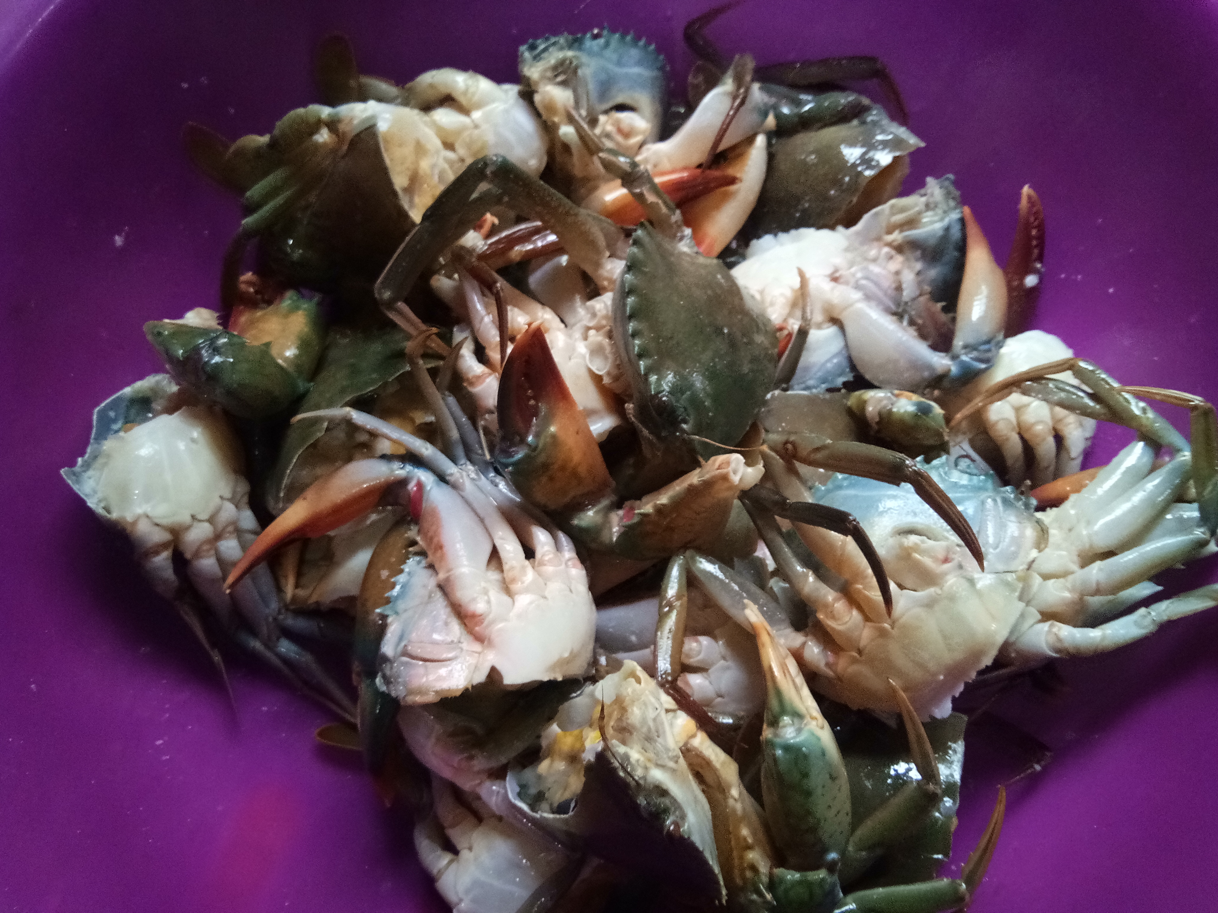 Saya membersikan kepiting dan ikan, sementara istri mempersiapkan bumbu soup. Sebab kepiting itu semua akan di masak soup. Kami makan siang bersama diakhir pekan ini pada pukul 13:10 menit.