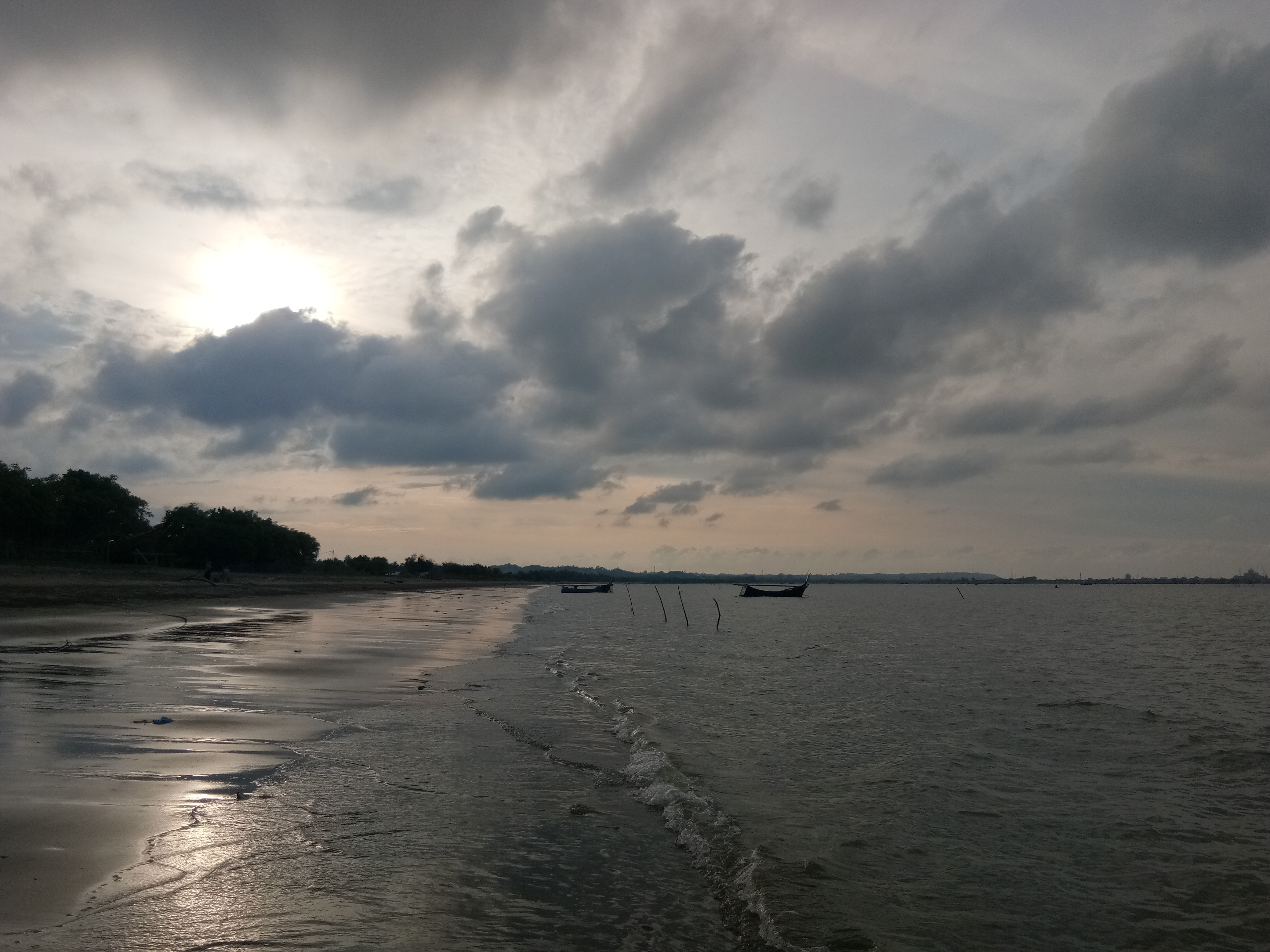 Ketika anak-anak sedang bermain di pantai, sambil menjaga mereka saya juga menyibukkan diri dengan mengambil beberapa photo sunset dan pemandangan dilautan lepas, dimana disana terdapat banyak perahu nelayan.