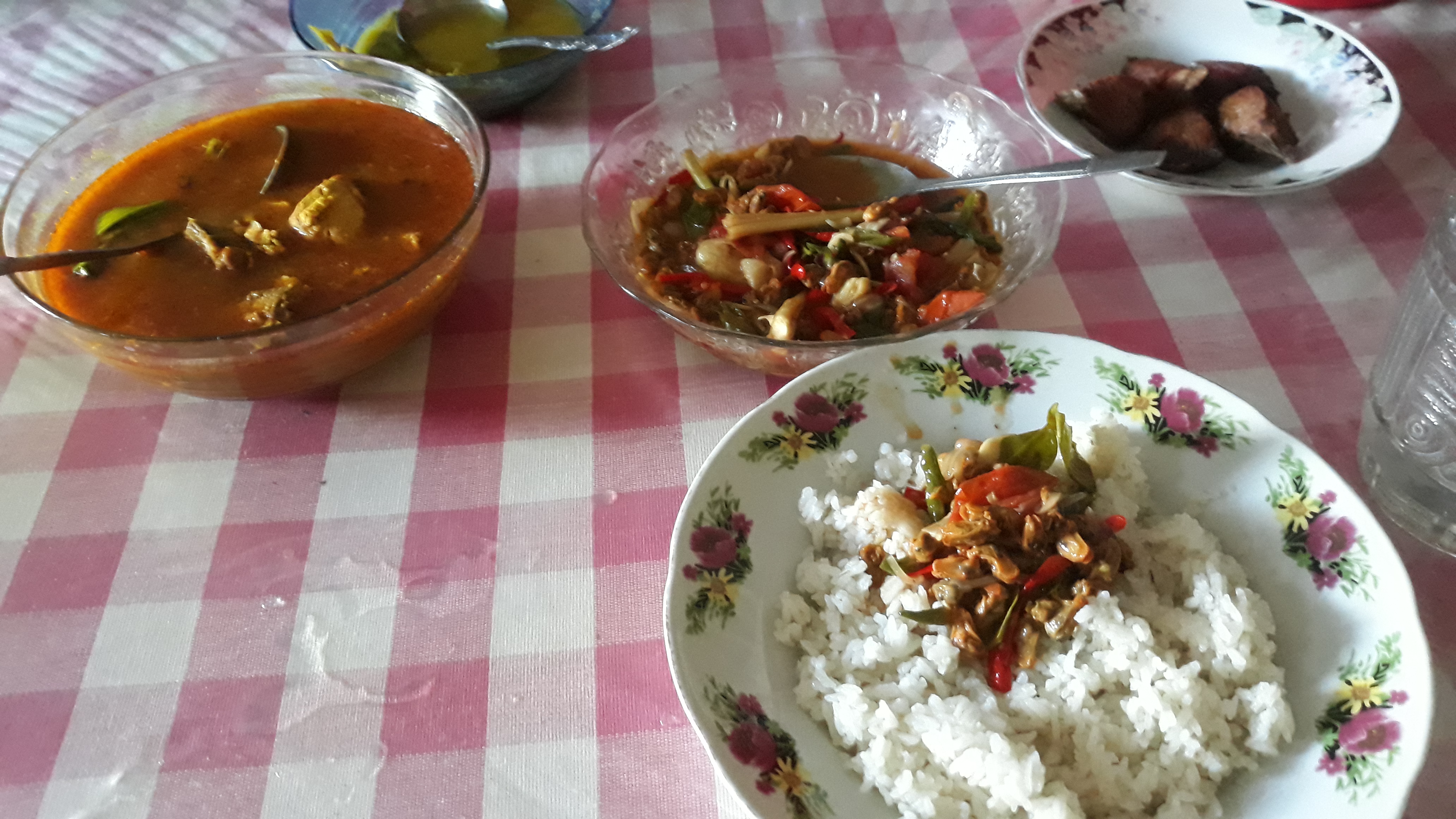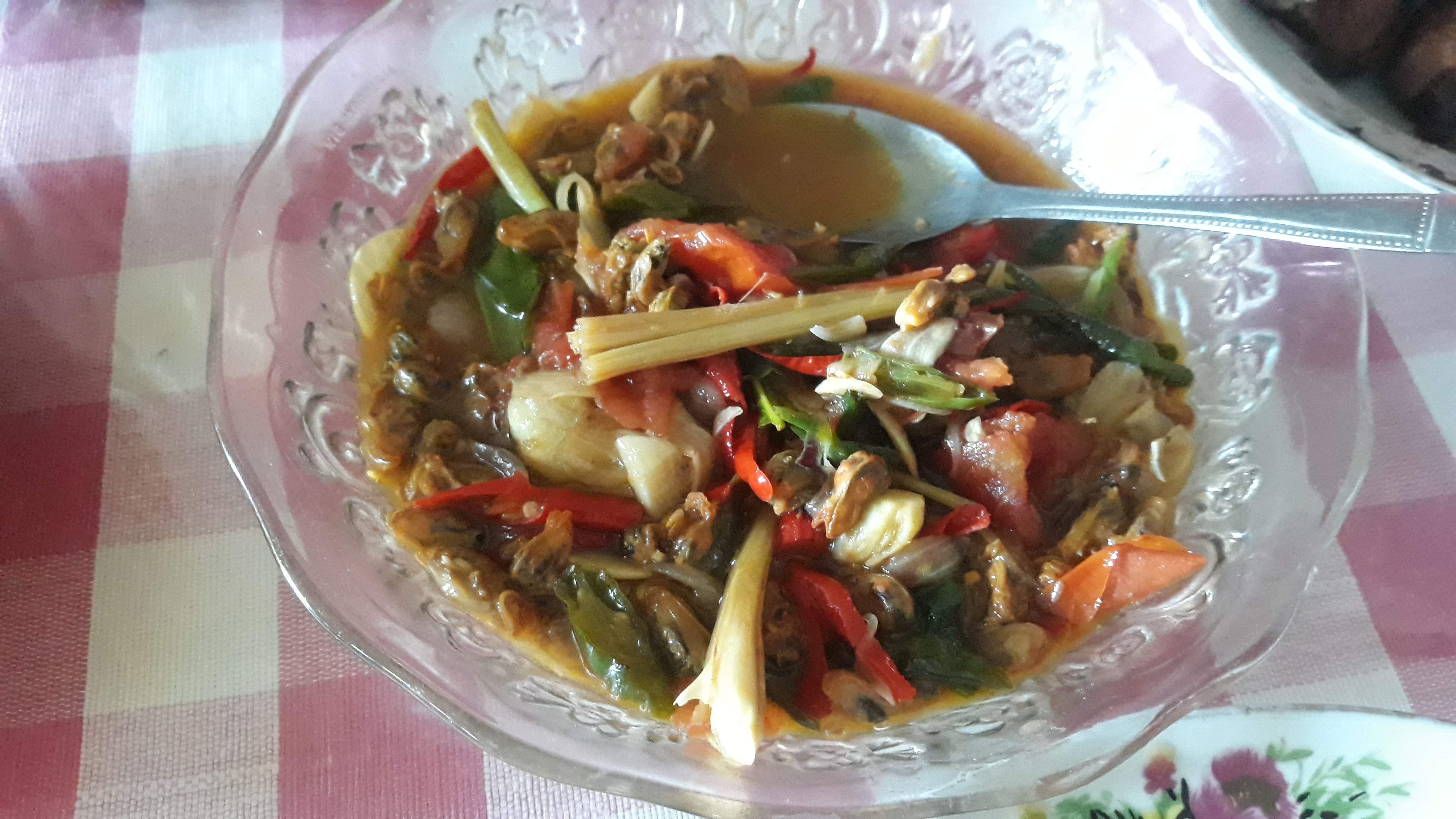Istri saya juga memasak tumisan seafood kerang yang di belinya dipasar sehingga melengkapi hidangan kami di siang ini rasa tumisan ini sangat lezat dan ada sedikit asam dan manis yang di timbulkan dari tomat dan saus tiram