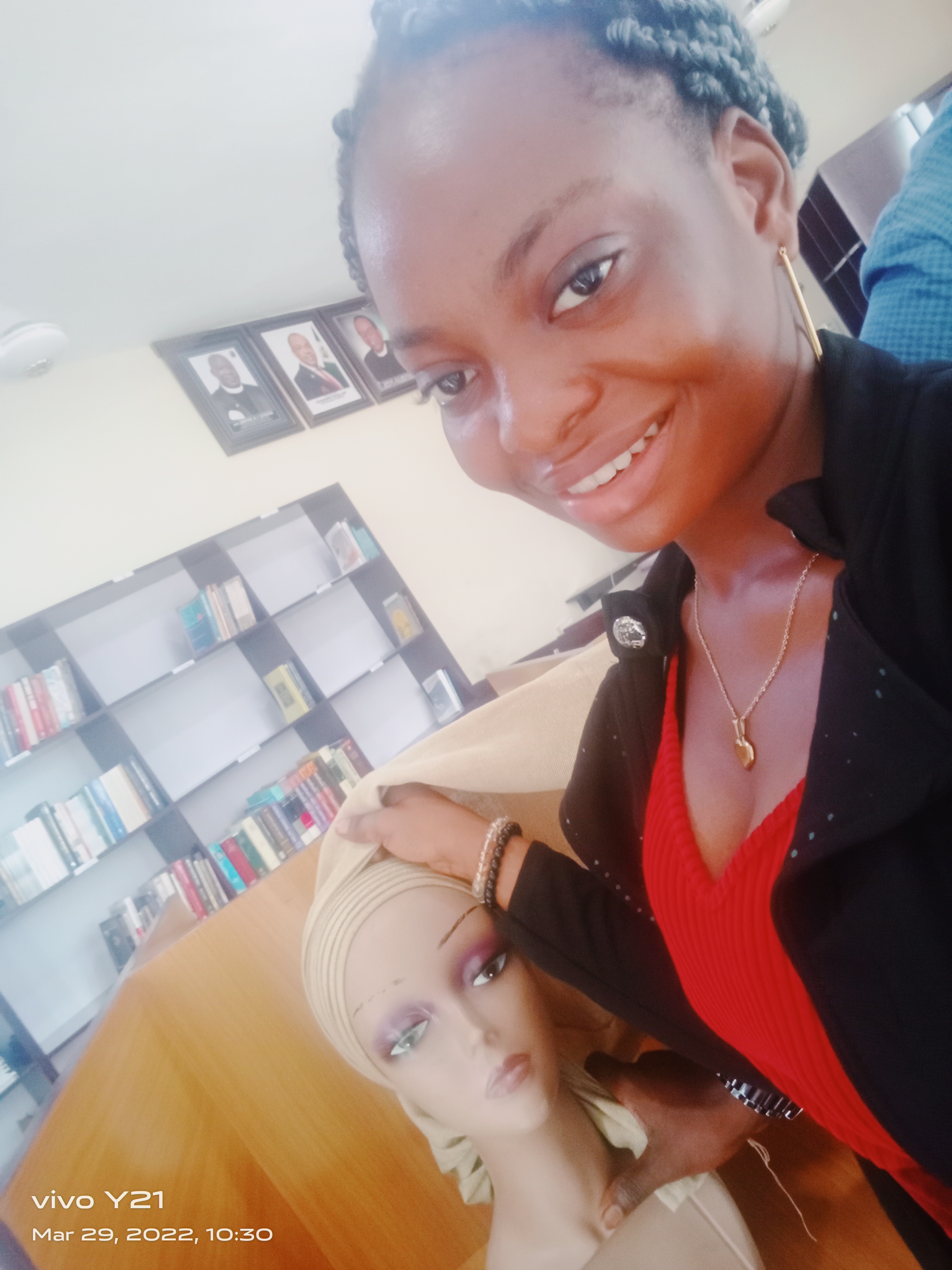 I will also make sure the pleats are tight on the model's head,then I will go ahead and pull them as am making more pleats cause I want it to be tight.