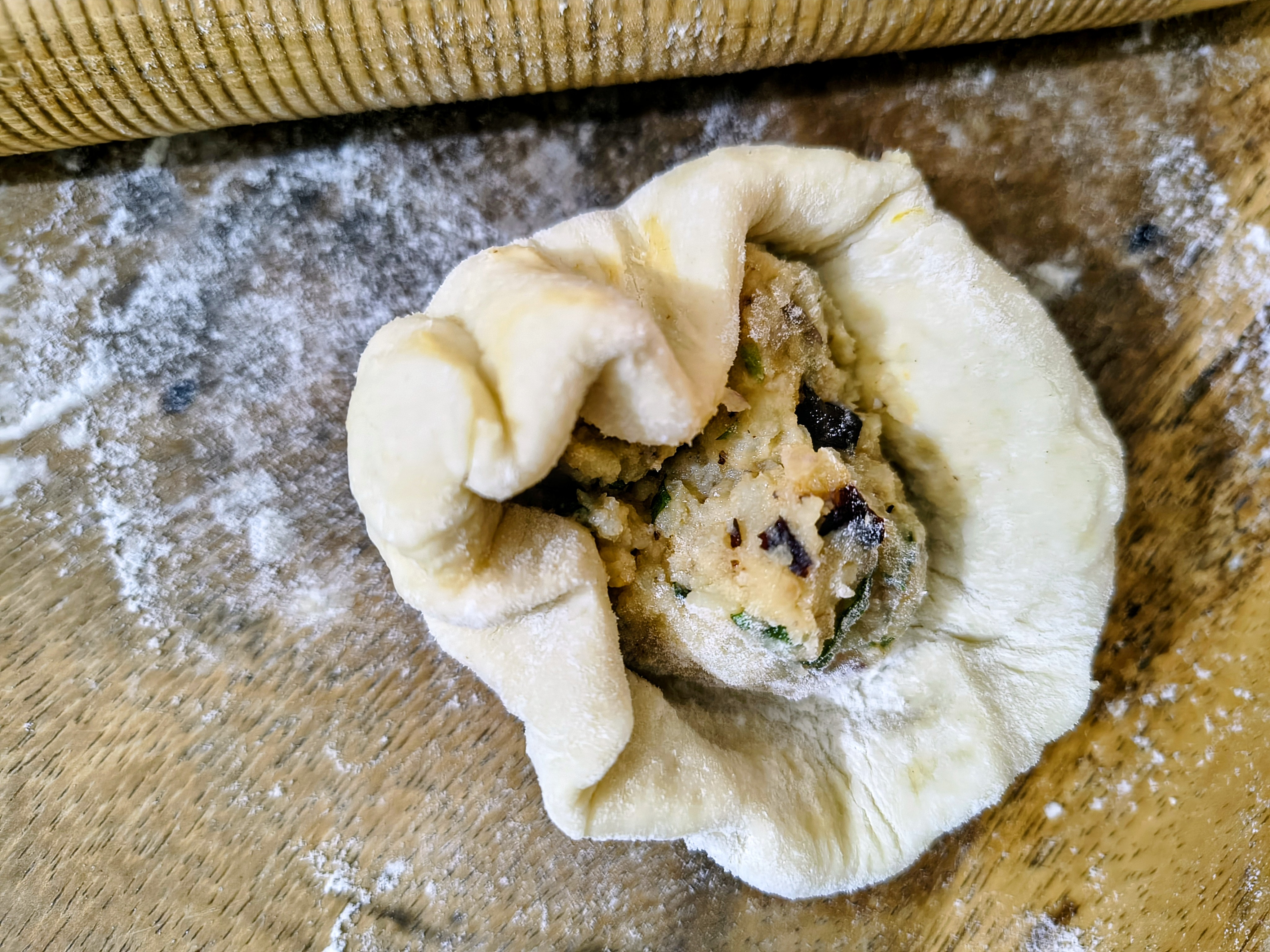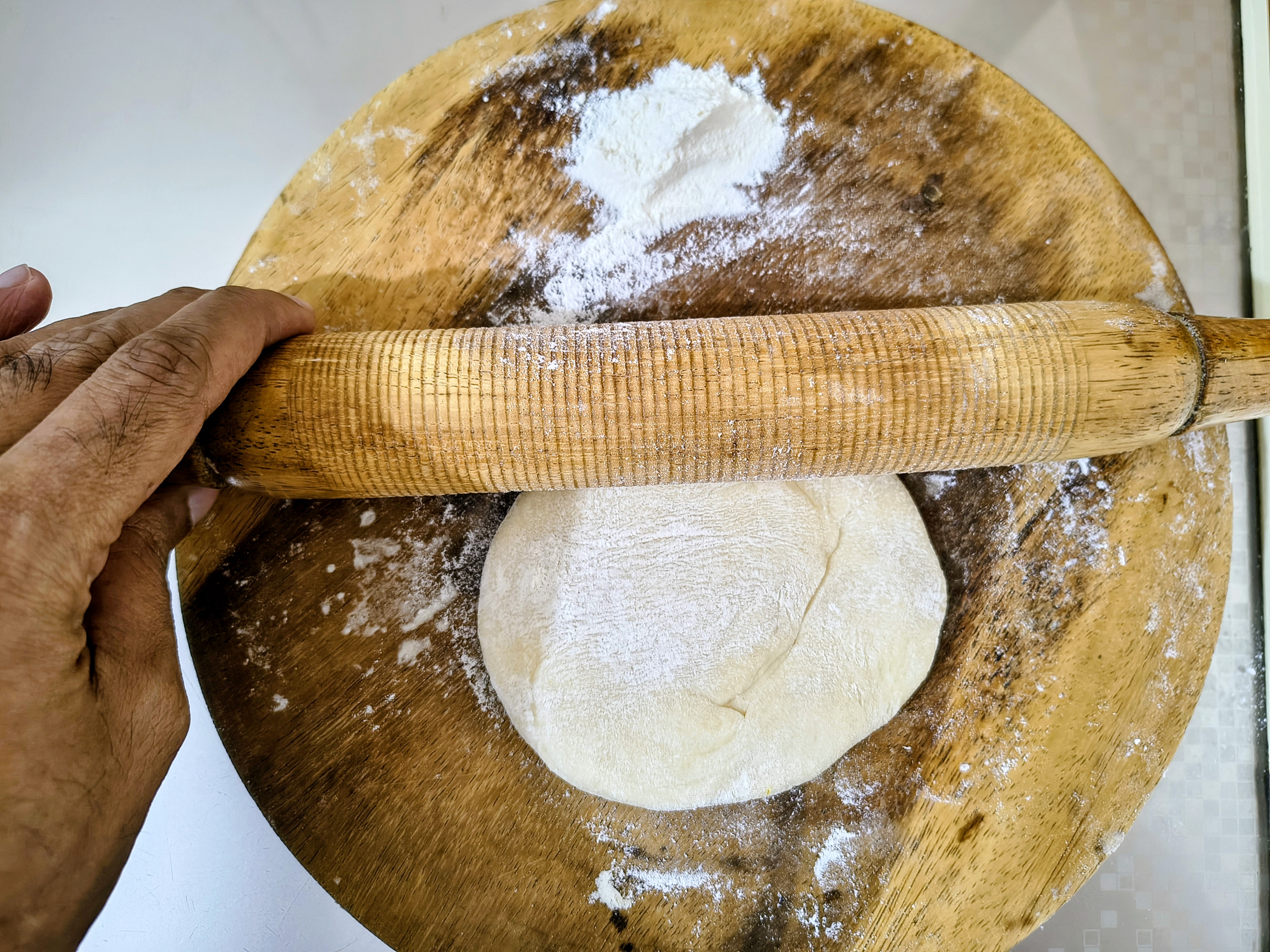 Step 4:Cut small round Shaped lechis from the prepared dough. Each lechi should be lightly rolled with a balloon and flattened a little. Now, place a small ball of the previously prepared potato filling right in the middle of this flattened part. Then, bring the sides together to completely cover the potato filling and again give it a round shape with your hands. Finally, this stuffed lechi should be rolled out like a roti with your hands very carefully. Do not apply too much pressure at this stage, otherwise the potato filling inside may come out, which will ruin the joy of making potato paratha.