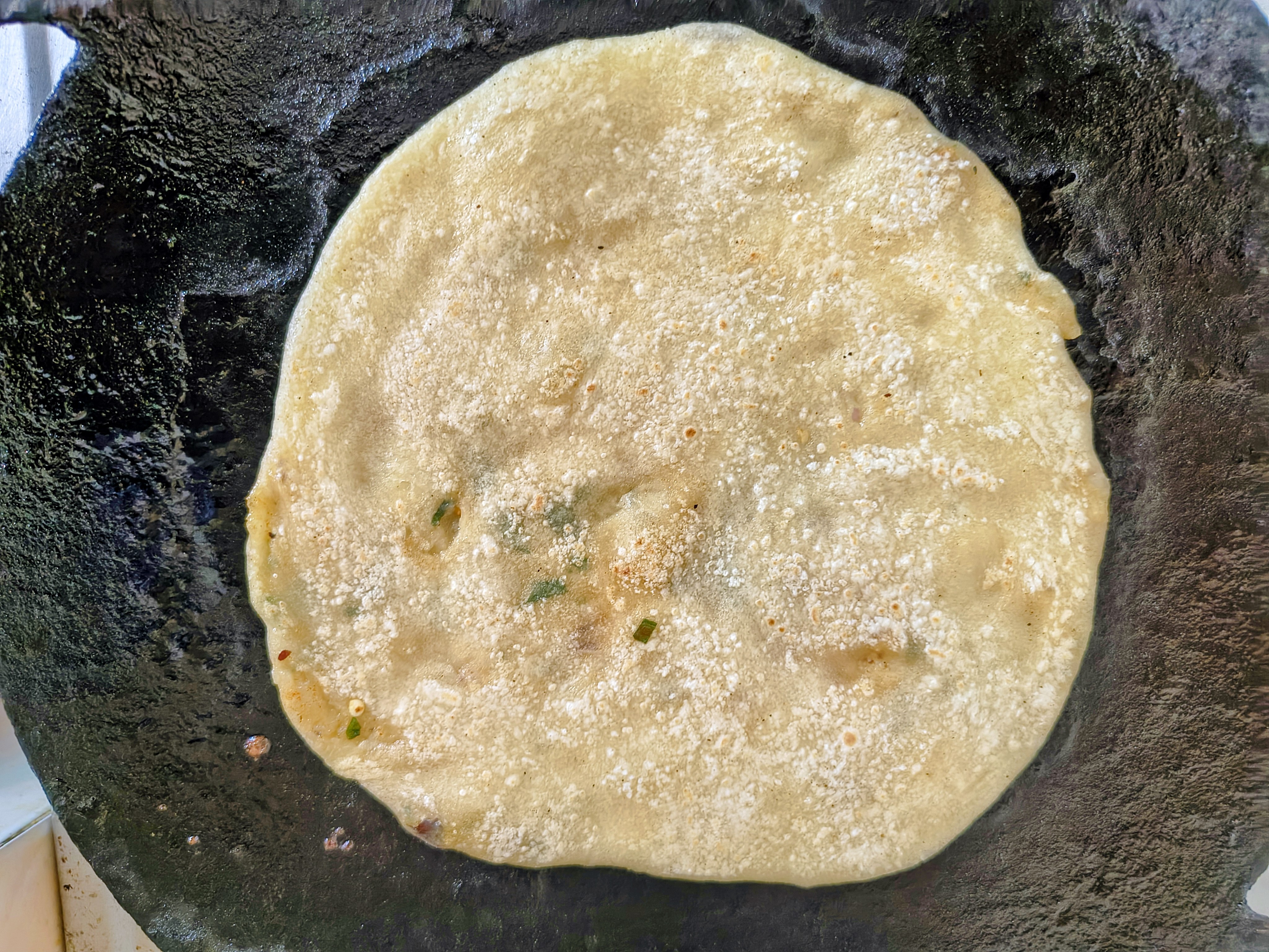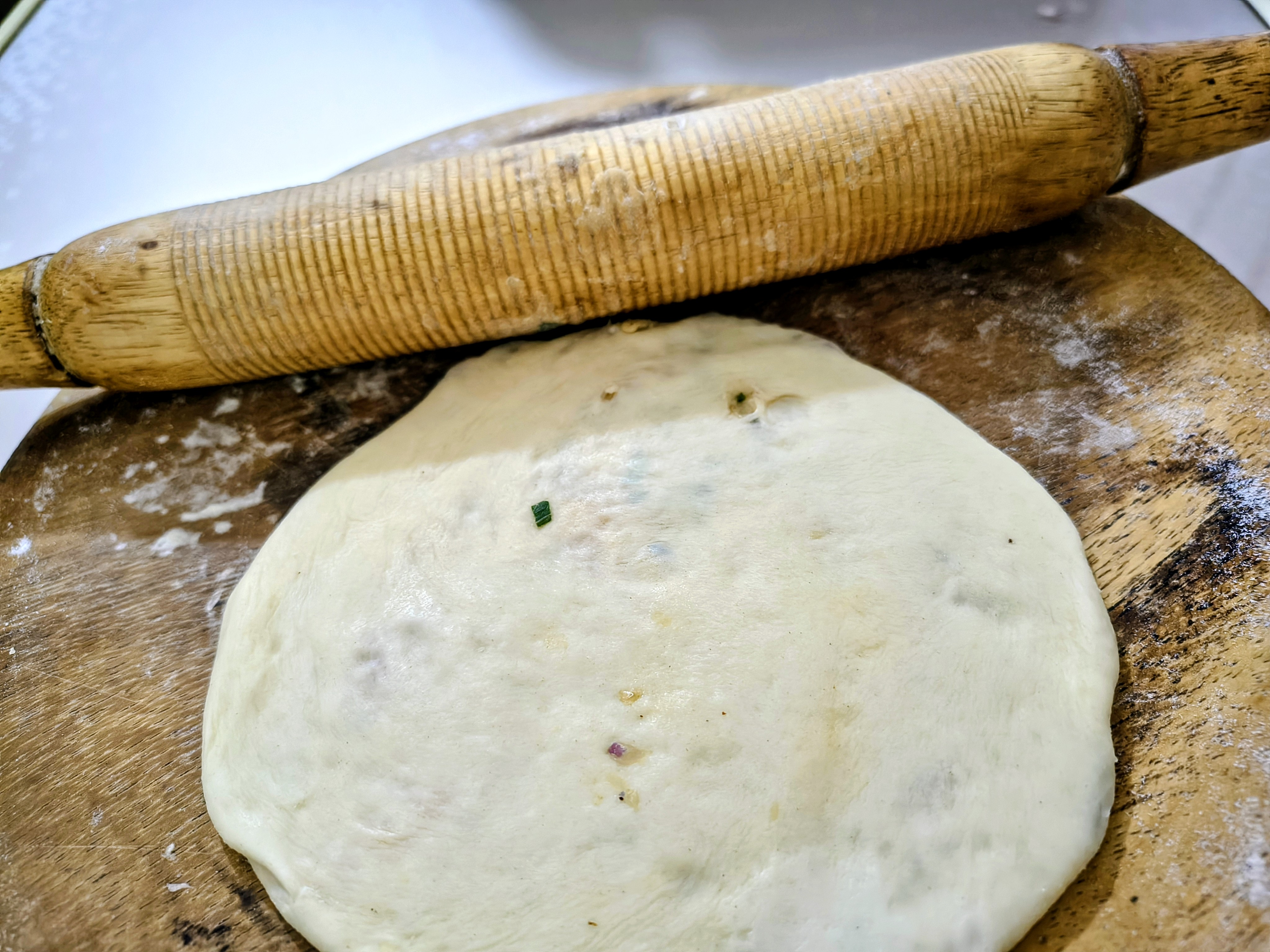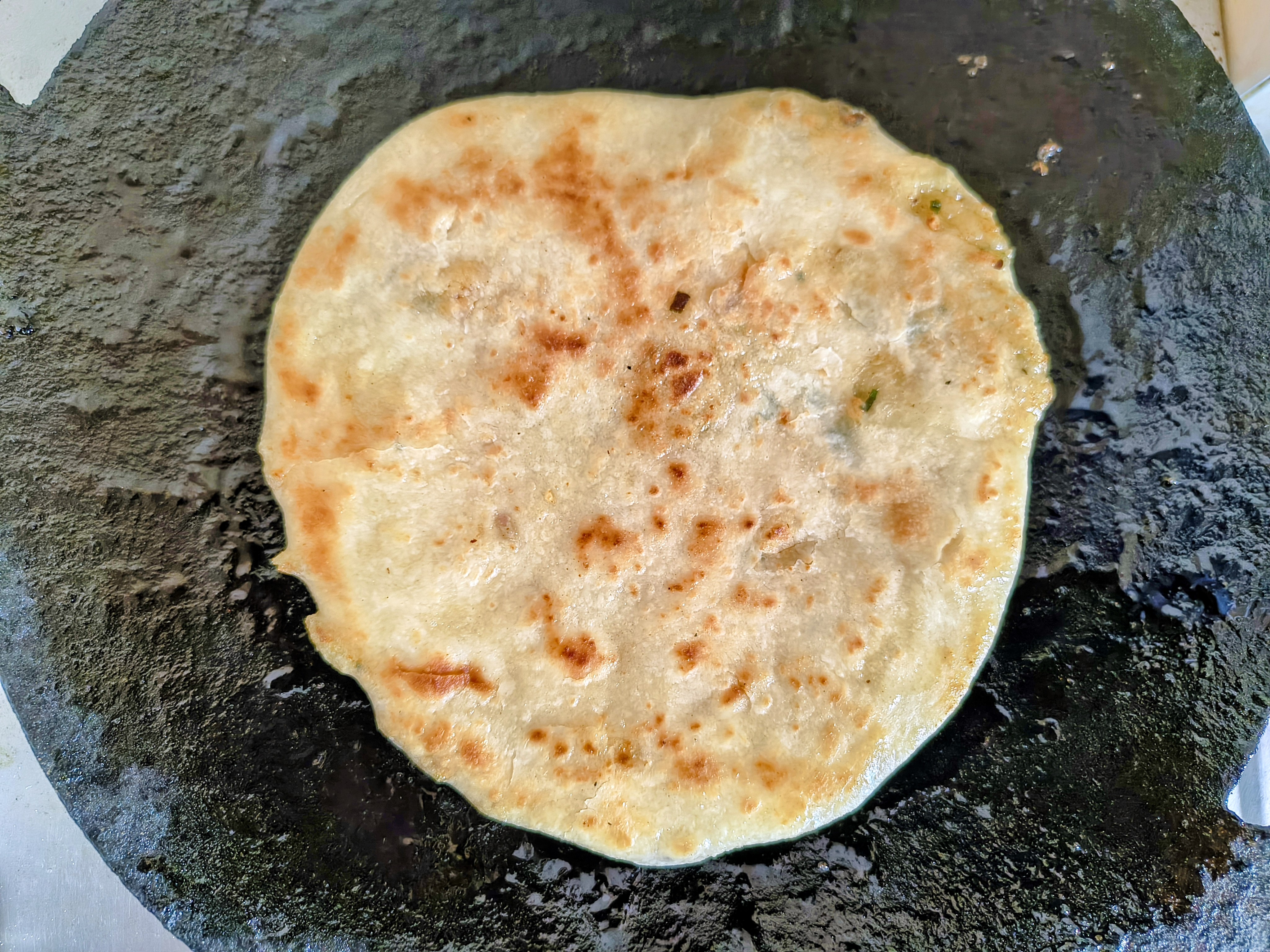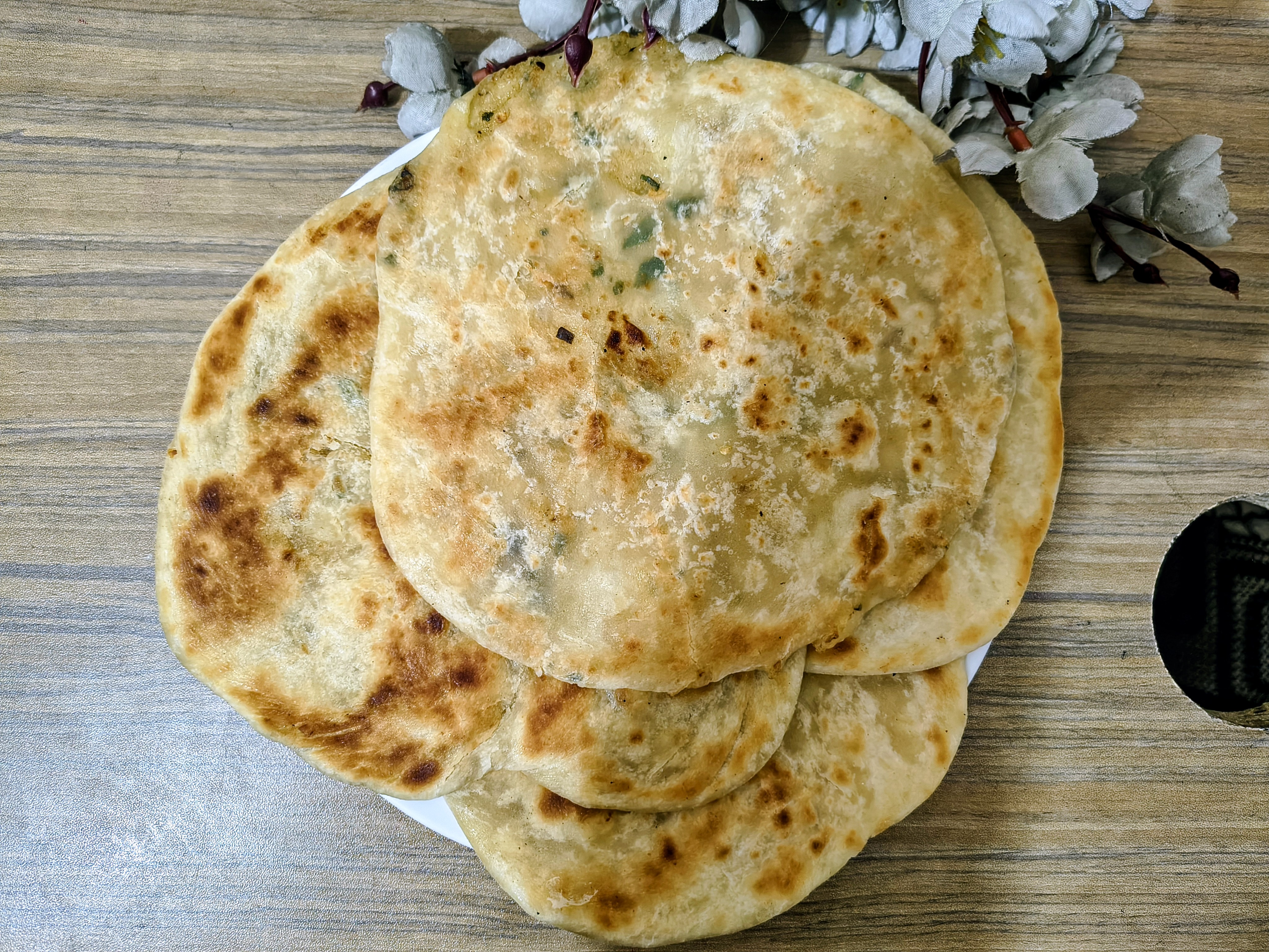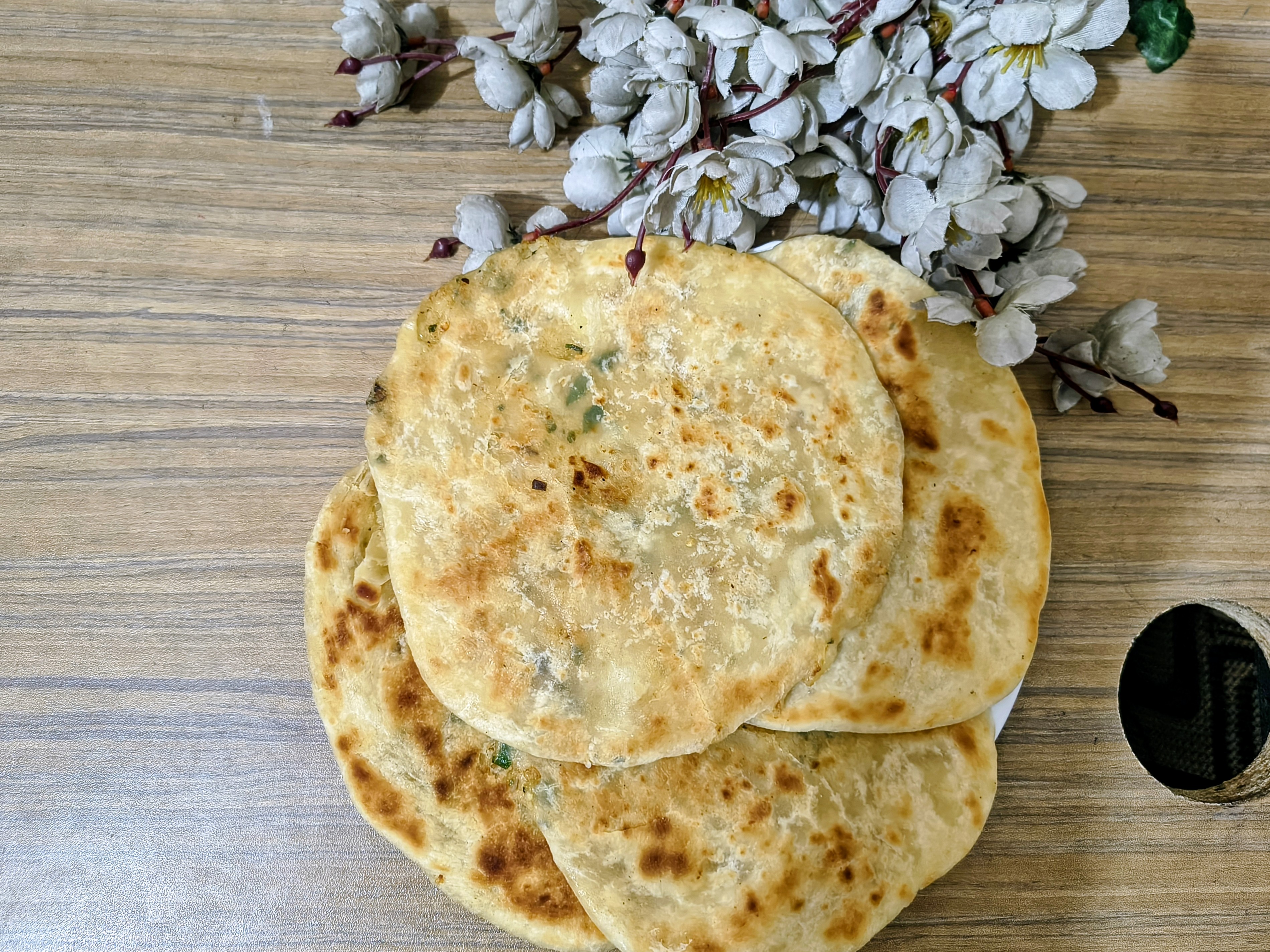 Step 5:Place a clean pan on the stove and heat it on medium heat. Place the carefully rolled potato paratha on the hot pan and lightly fry it on both sides. When the paratha is slightly hot, spread a little soybean oil around and on top of it. Then turn it over and fry it until both sides are golden brown and crispy.