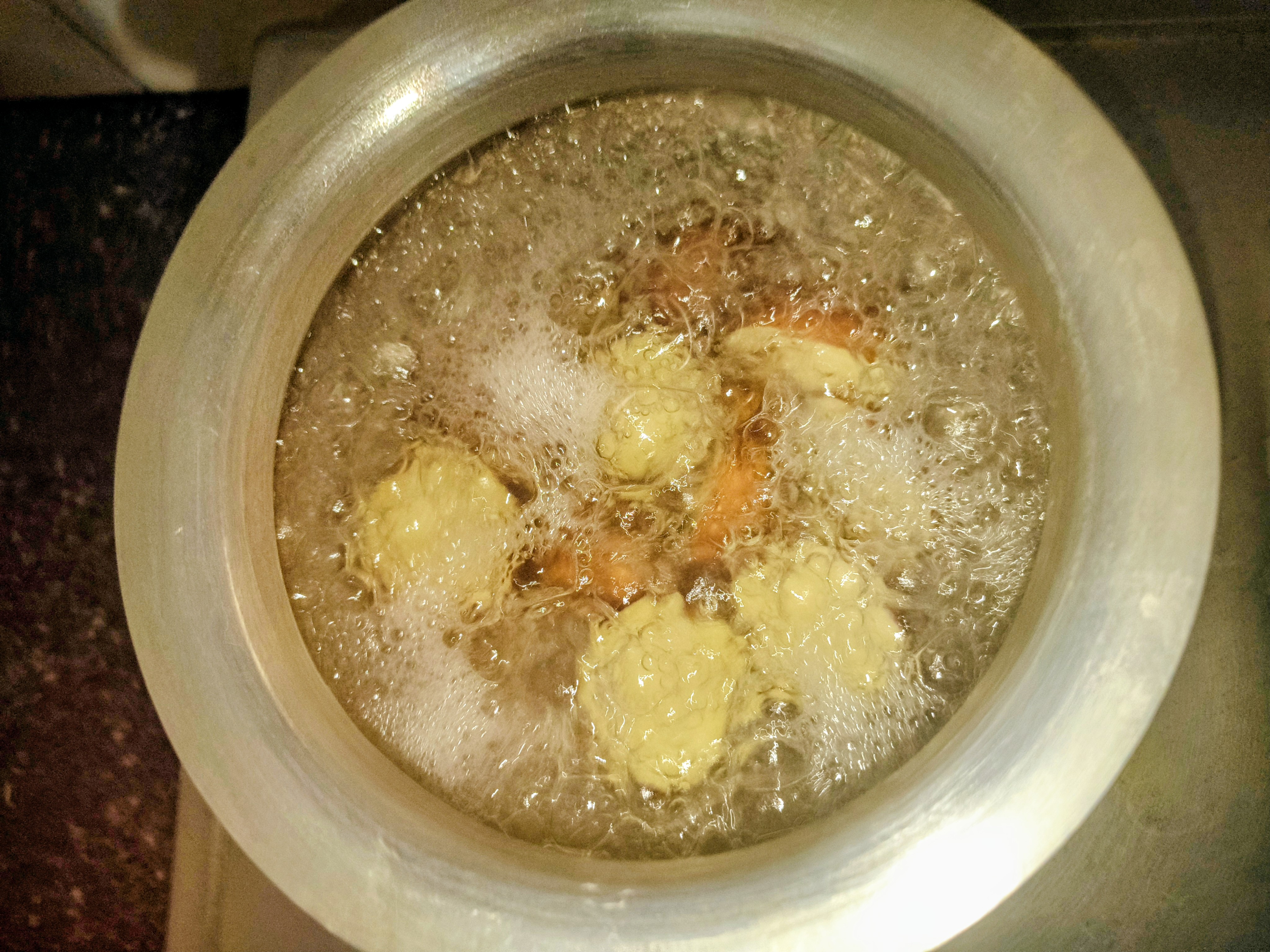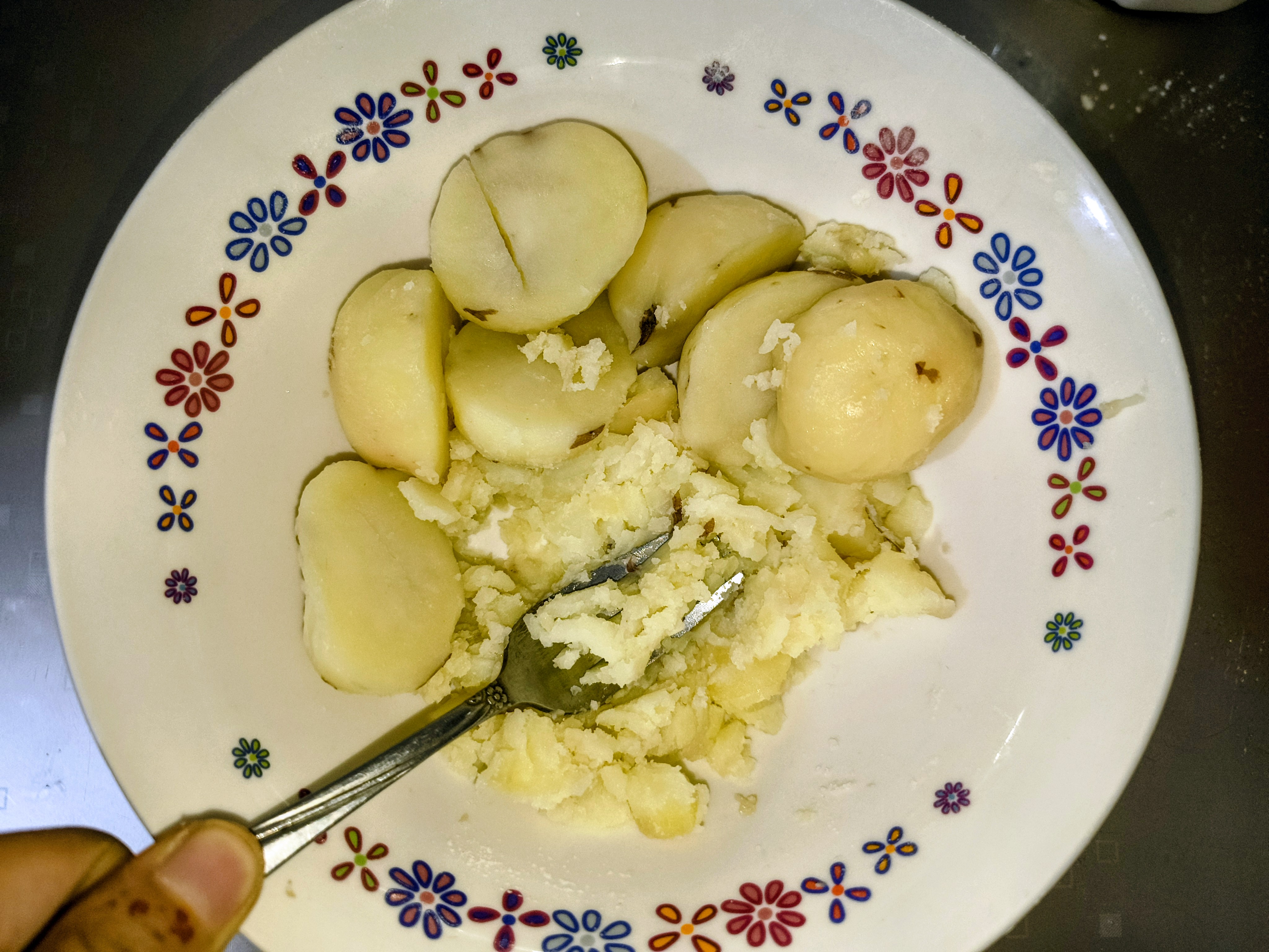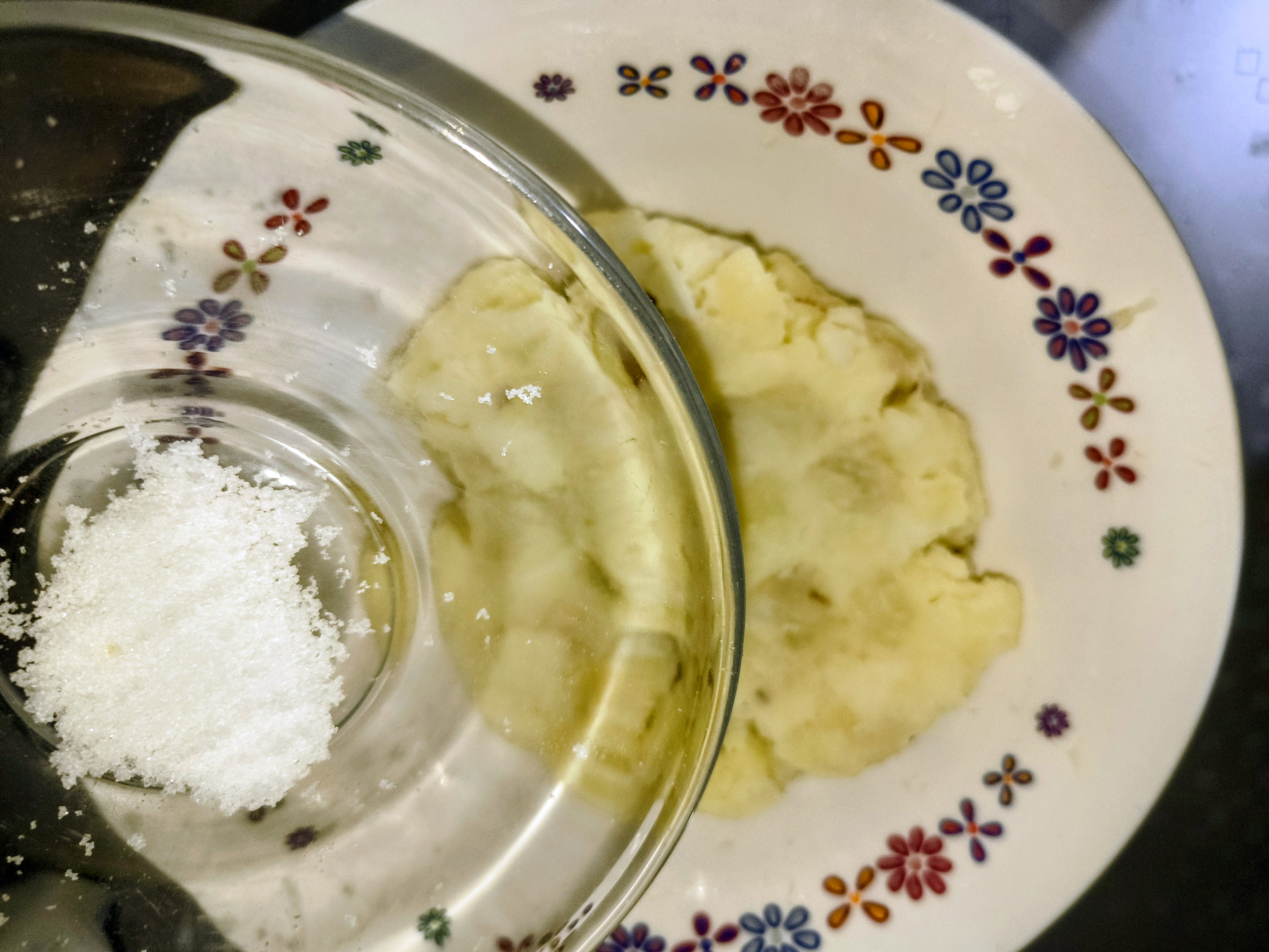 Step 1:First, take the potatoes in a clean bowl and wash them thoroughly with enough water so that there is no dust. Then, if each potato is cut in half from the middle, it helps in boiling it quickly. Let the water heat up in a bowl and drop the potato pieces in it. When the potatoes are completely boiled and soft, drain the hot water and carefully peel the potatoes. Finally, with the help of a spoon, the potatoes should be mashed in such a way that there are no grains or hard parts inside.