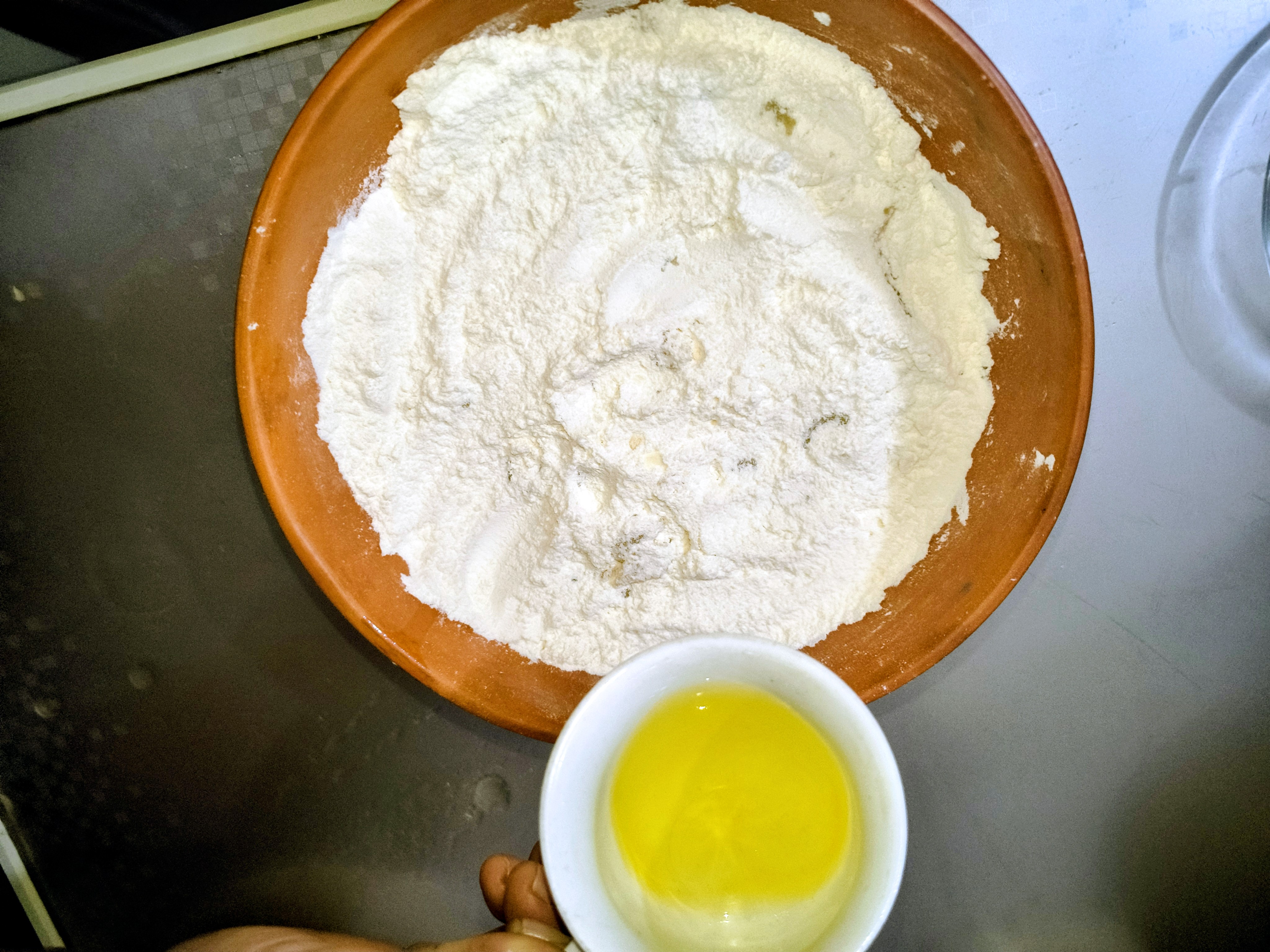 Step 3:Take a proper amount of flour in a clean and dry bowl. Then add salt and a little soybean oil to it as per taste. First, lightly knead the flour with oil by hand, which will help make the dough soft and smooth. Now, add water little by little and knead it very well to make a soft 'dough'. The more perfect the dough is kneaded, the fluffier and tastier your next step will be.