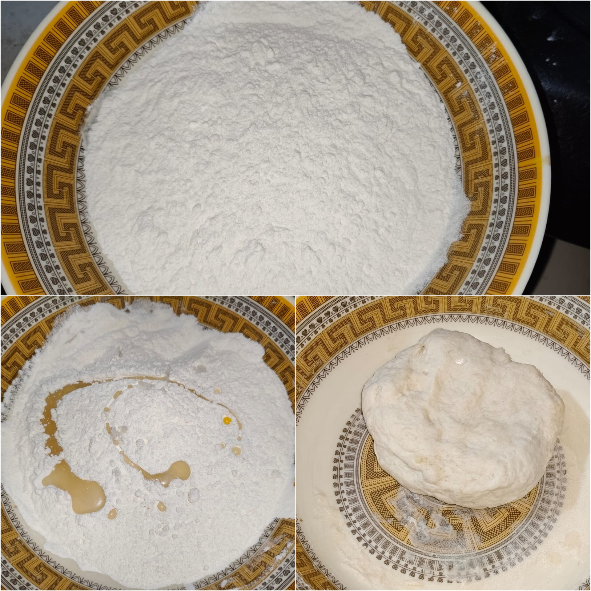 Then I took a certain amount of flour in a bowl. I added a certain amount of salt and oil to the flour. Then I prepared it to make potato parathas.
