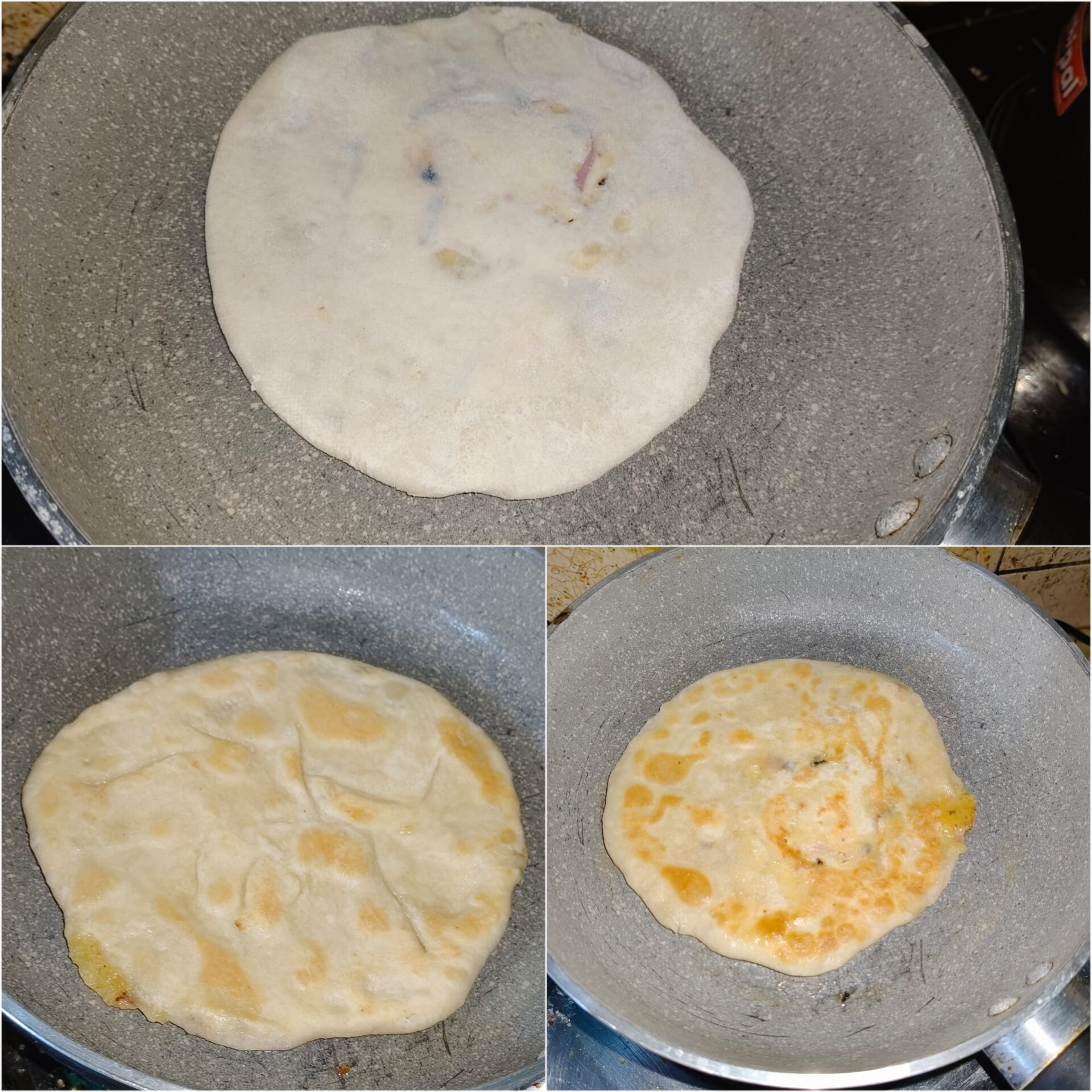 Then I fried the paratha in a pan with a little oil. I spent a lot of time frying the paratha and it turned out very nice.