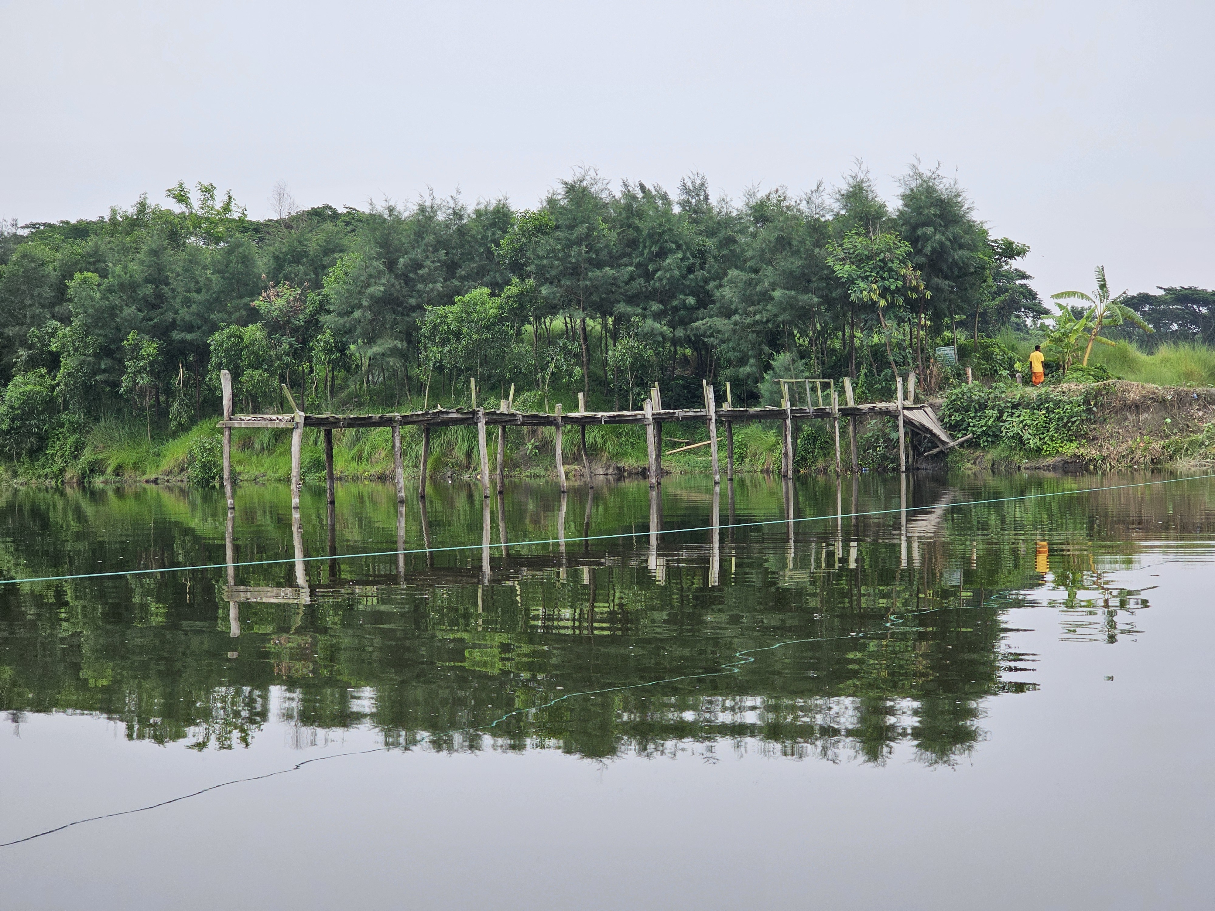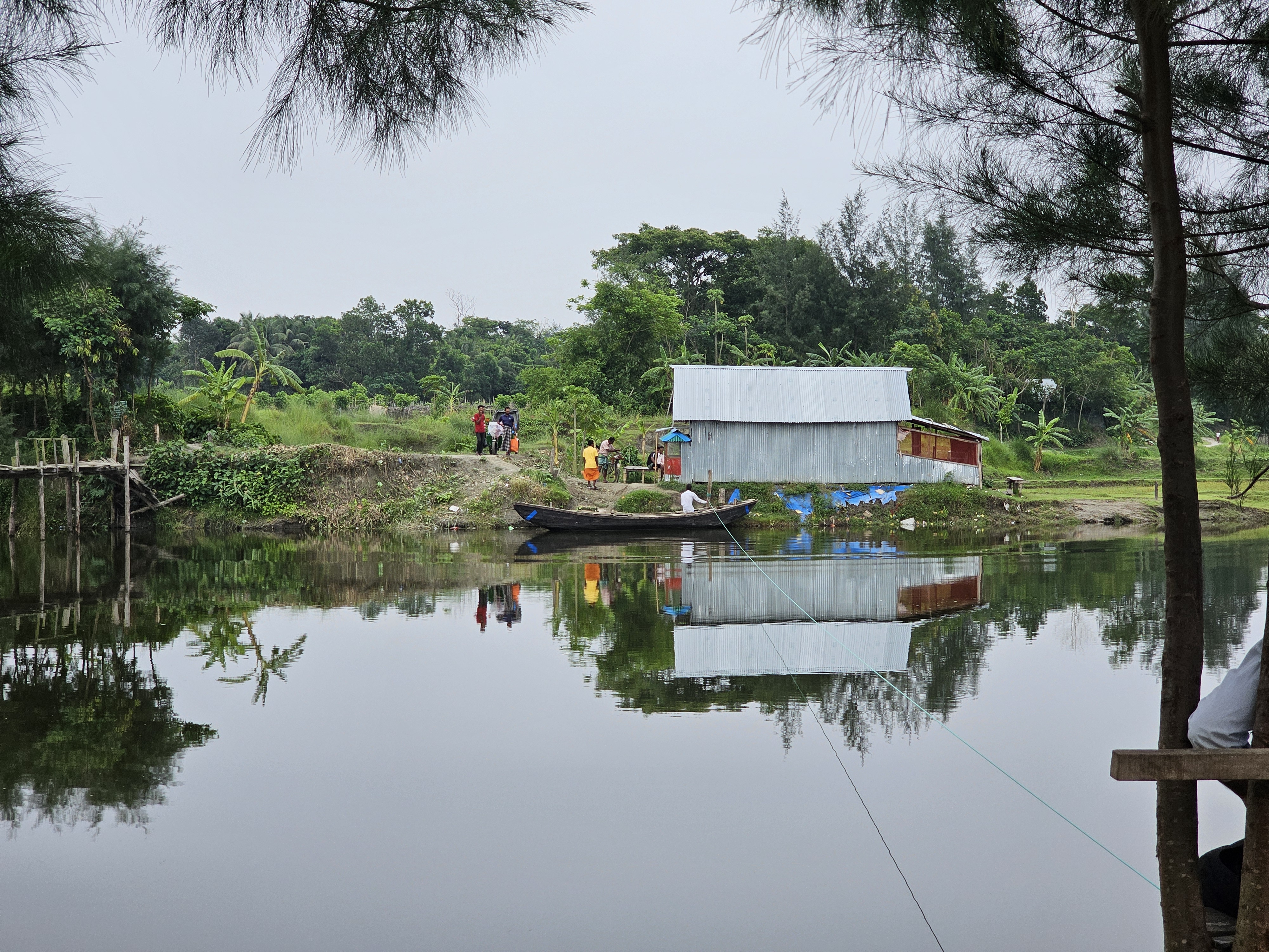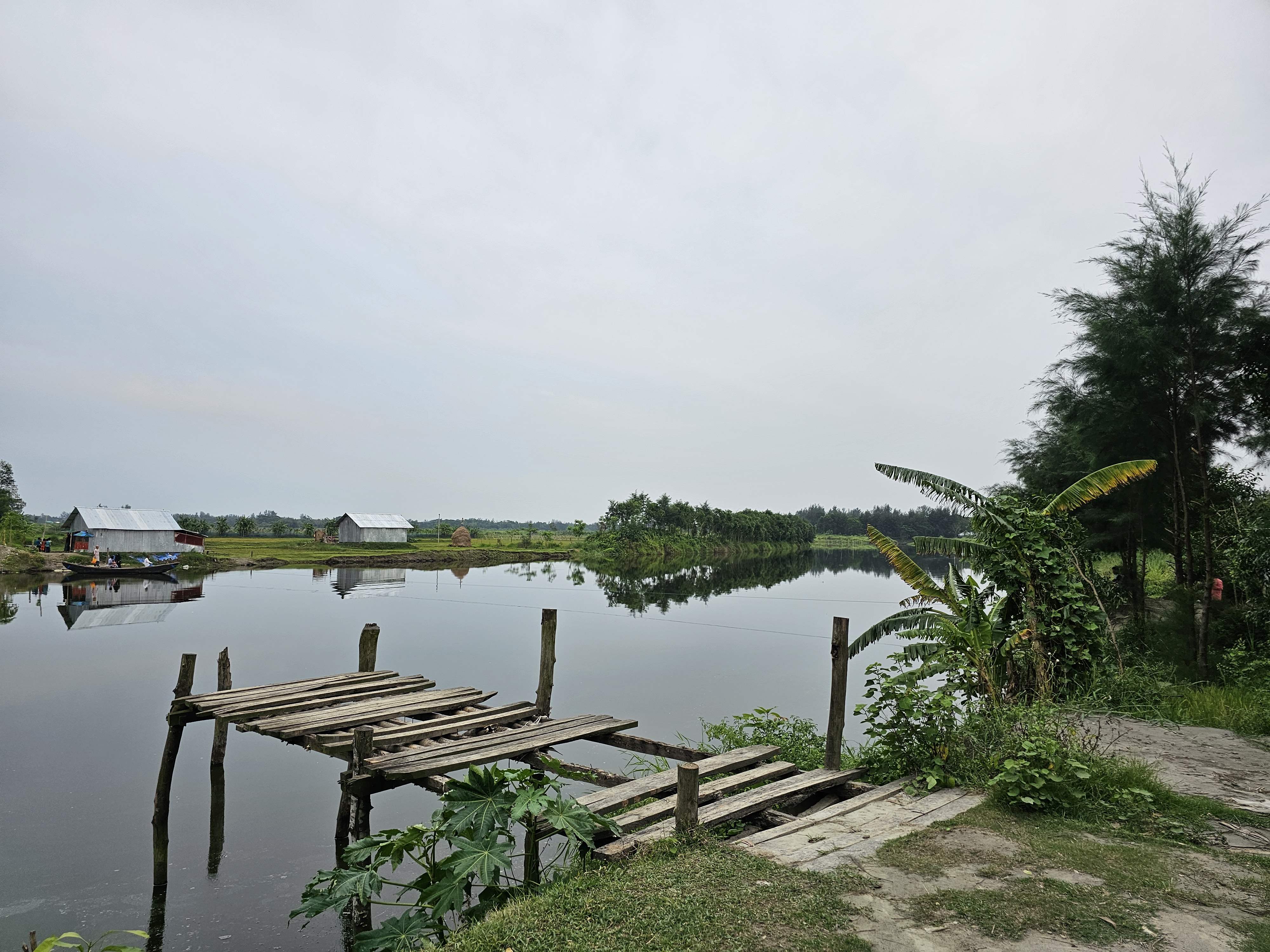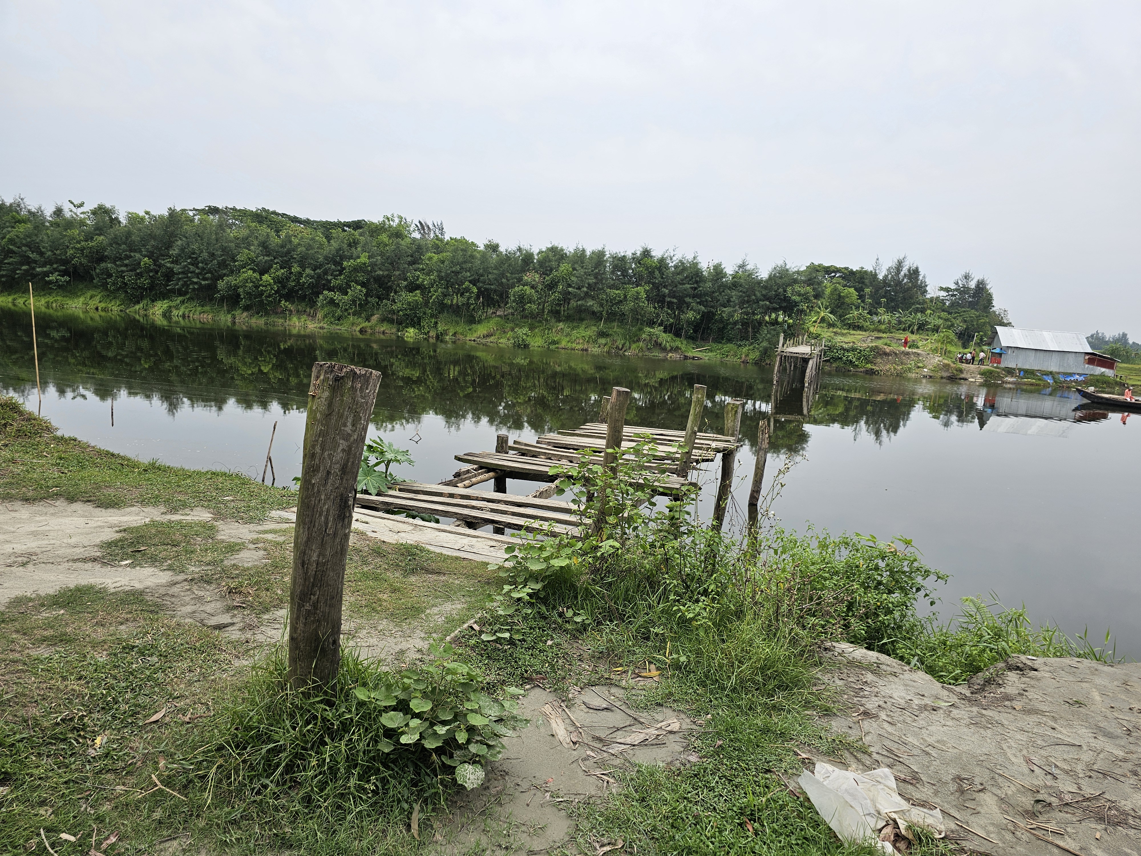 There is a very beautiful platform on the bank of this river. The platform was made of wood. And this wooden platform was very beautiful to look at. If there is such a beautiful platform on the bank of the river, then it is very nice to sit there and spend time. And it is even more nice to sit on such a beautiful platform and dip your feet in the river. This platform was much better and very strong. The platform looked much more beautiful in the middle of the whole environment. And there are almost many boats on this river. Fishermen catch fish in boats. Again, there are some boats that take passengers from one side of the river to the other.