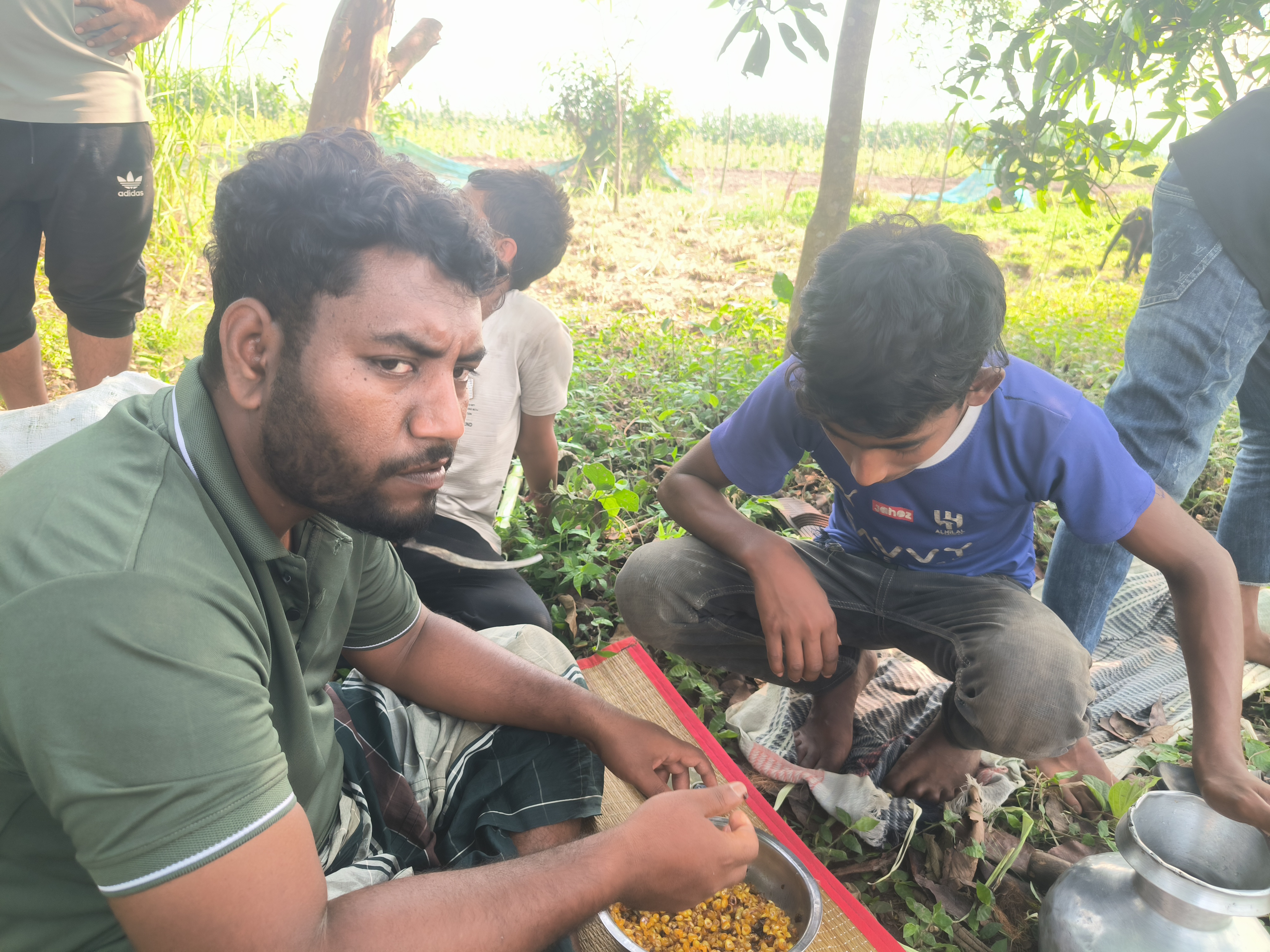 Hello all my Steemit friends, I hope you are all doing well. Today I am going to share with you the moment when all the boys ate fried corn together. Actually, it is very hot in Bangladesh now, electricity load shedding is constantly occurring, in fact, the life of the village people has become very difficult. All the people of the village spend their days sitting in the fields or gardens in different places during the day, in fact, it is impossible to stay at home in the excessive heat. If there is load shedding again, then the life of the rural people is really very difficult. So all of us boys were sitting in a garden next to the house and while we were sitting there, we brought corn from the field and ate fried corn. The moment of eating fried corn was really a very special moment for all of us, I will share these moments with you today.