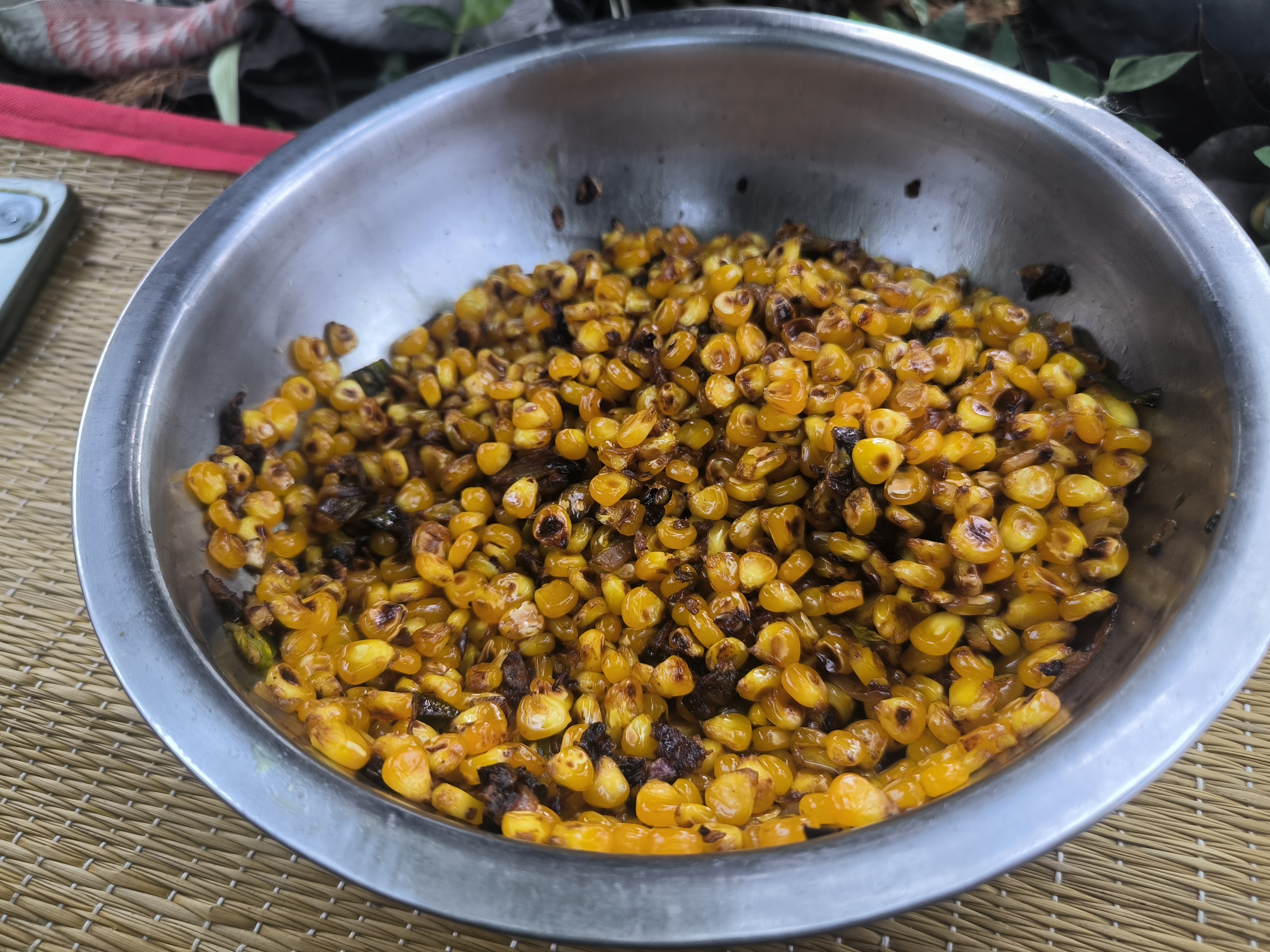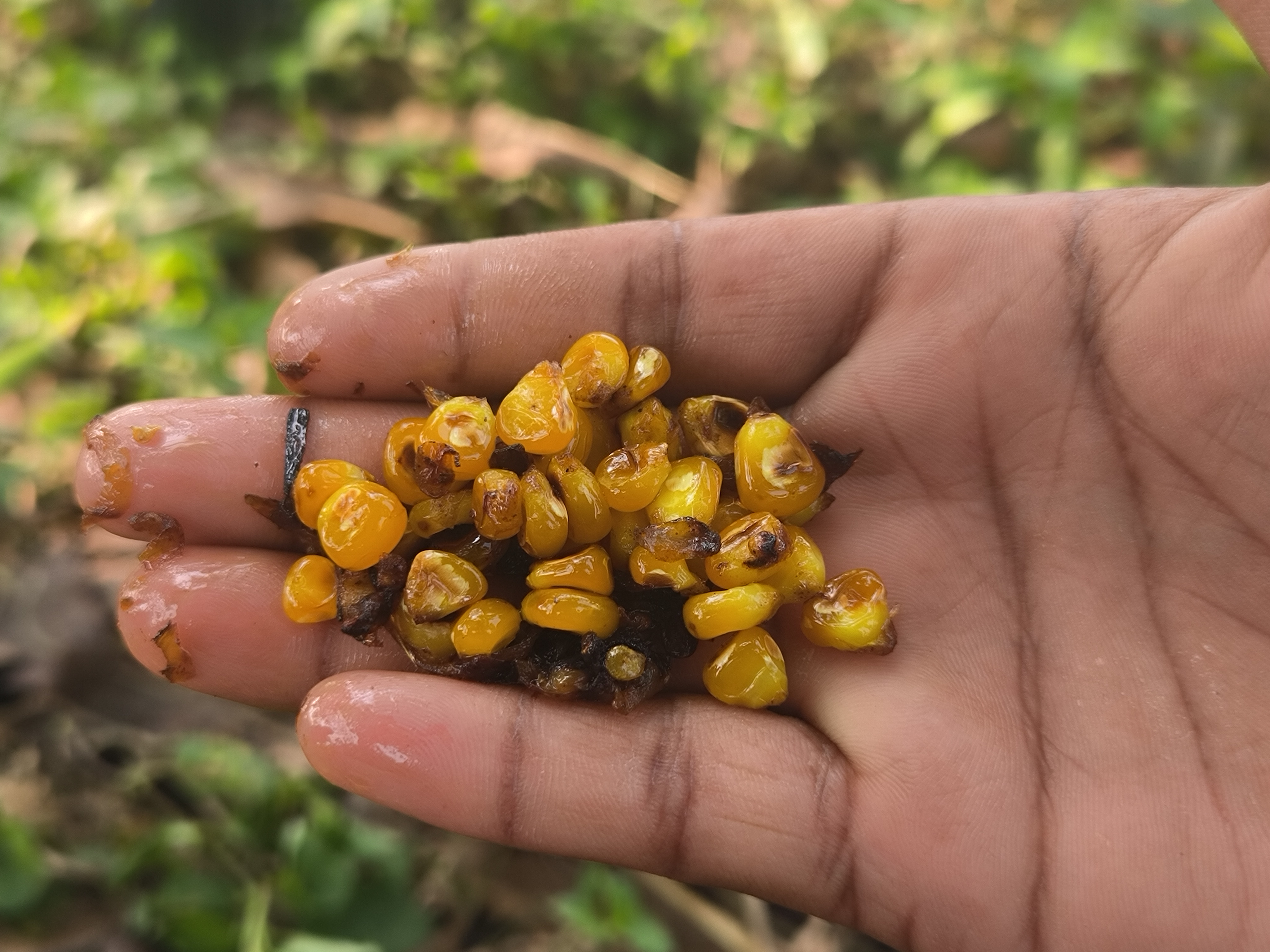 If you look above, you will see that we all kept the ballot together in a specific place. In fact, after frying the corn, the corn was brought very nicely. We had many boys sitting there together and we were all chatting together. We fried the corn and ate it while we were chatting. All in all, that moment was a very memorable moment for us. All the boys, young and old, were eating the ballot there and we all enjoyed the story together. In fact, everyone really likes spending time in nature. I myself enjoyed the time a lot.