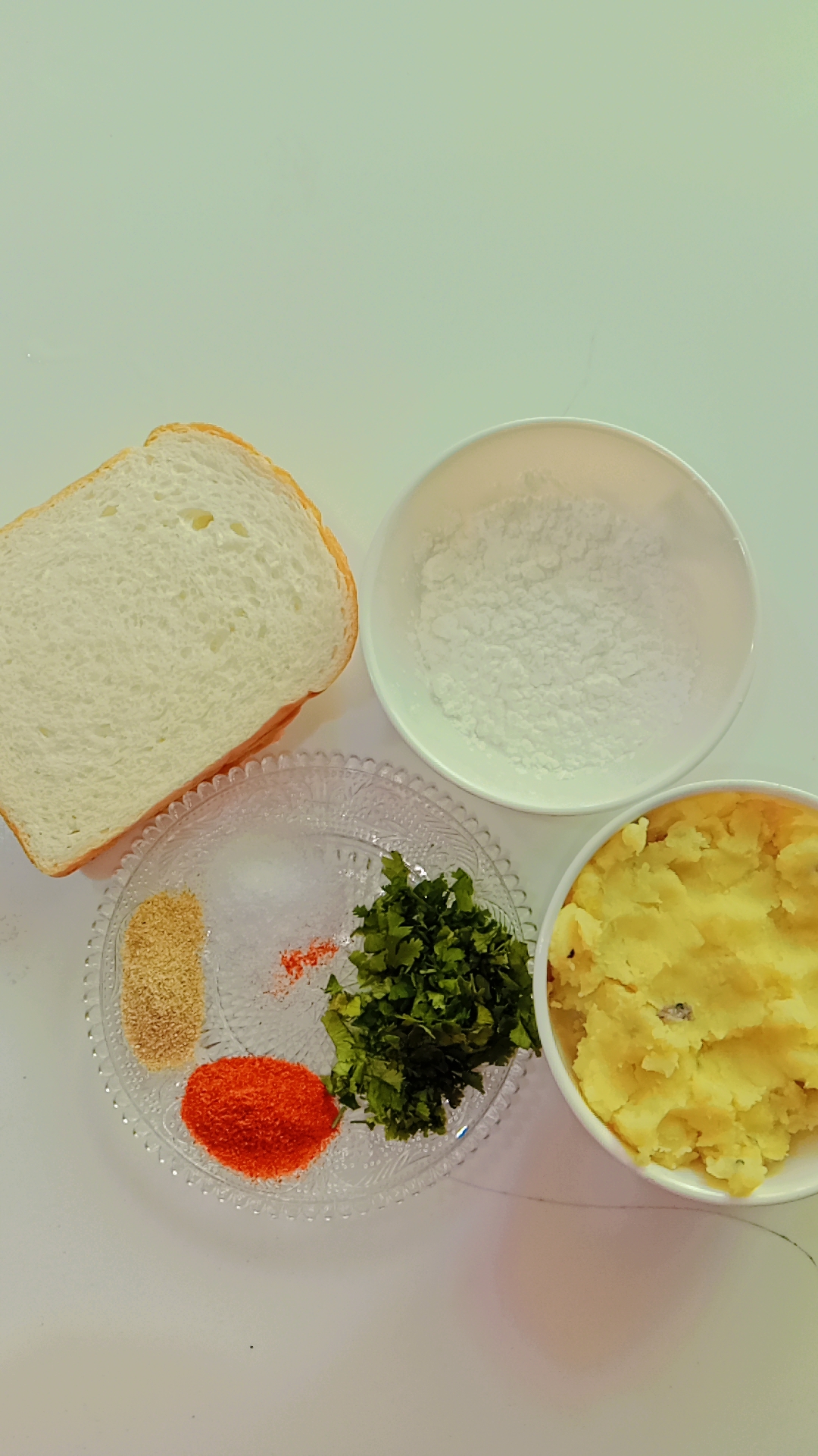 This is a good potato snack recipe. Using bread slices and corn flour as a binder is a smart technique to keep the chops from breaking while frying.