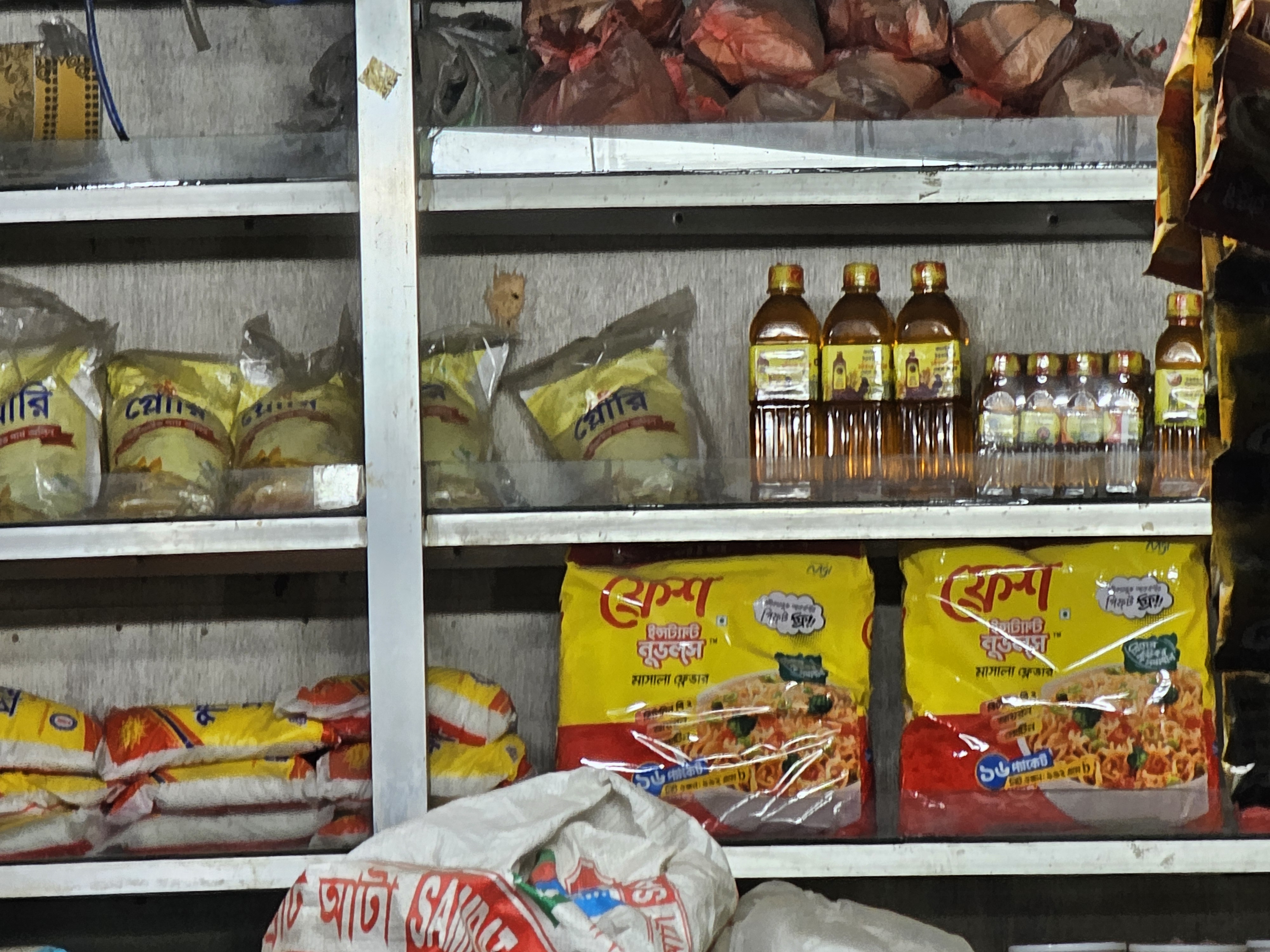 This is a grocery store. Where almost all kinds of groceries are available. Everyone can easily get all kinds of necessary things here. This store has potatoes, onions, garlic, ginger, chili powder, turmeric powder, milk powder, tea leaves, noodles, sugar, semai, salt, spices, mustard oil, soybean oil, soap, shampoo and many other necessary things. This grocery store has all kinds of necessary things. Due to which everyone can buy almost all kinds of things together from here very easily. If there is everything in one store, it is much more convenient to shop from there.
