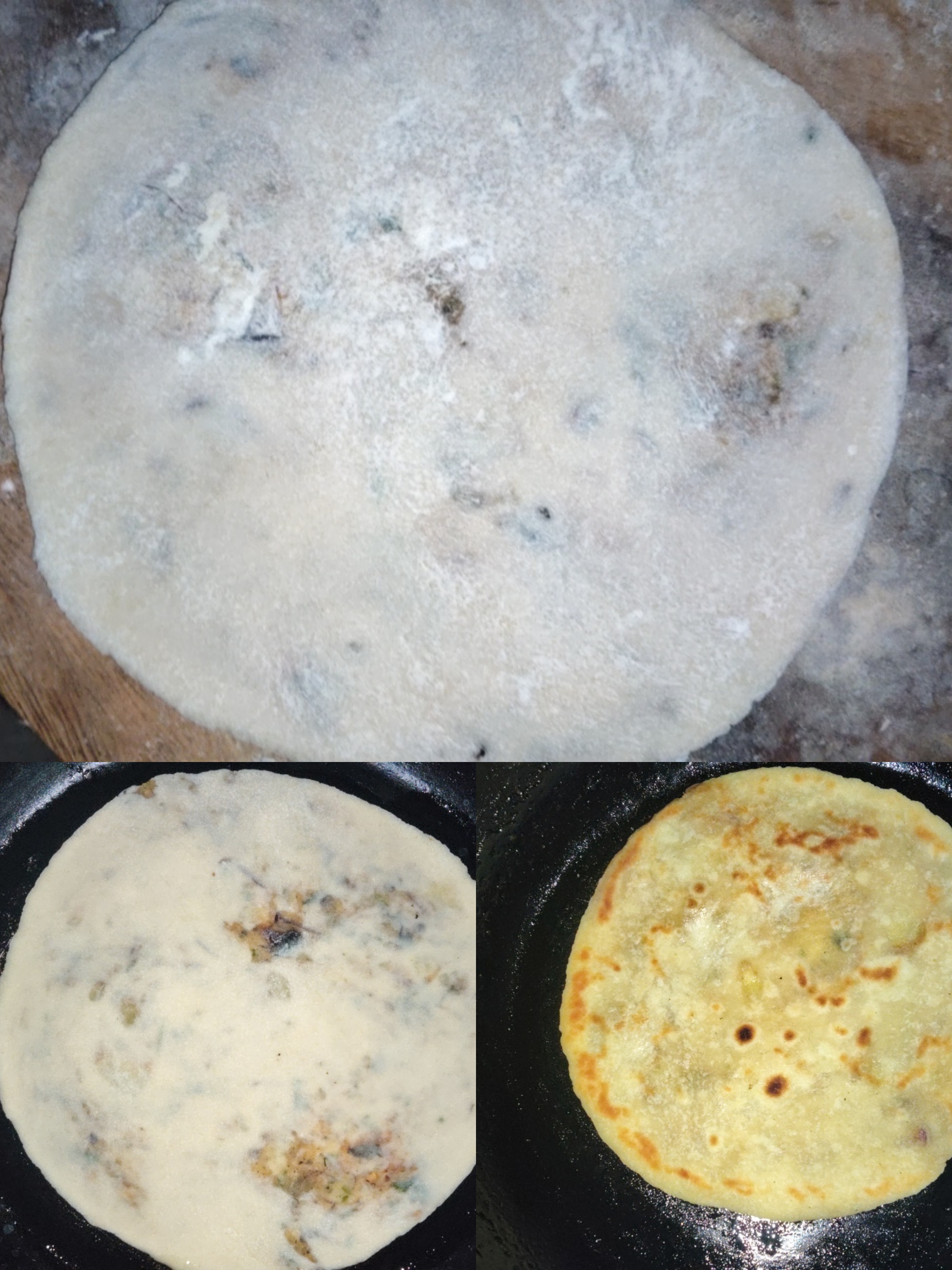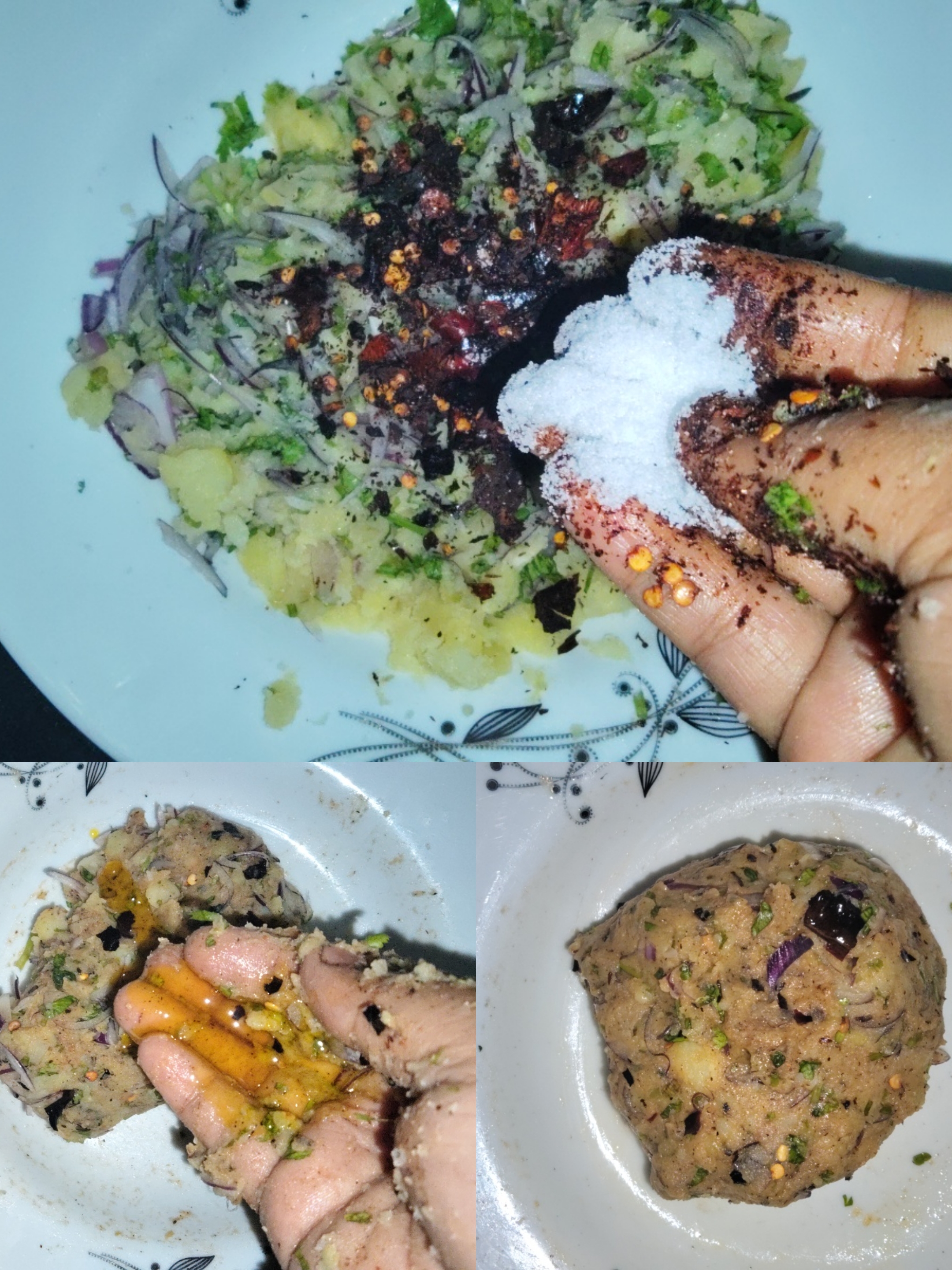 Then I kneaded it well and shaped it into a paratha. Then I fried it well. I made many potato parathas. Then I served it as I liked.