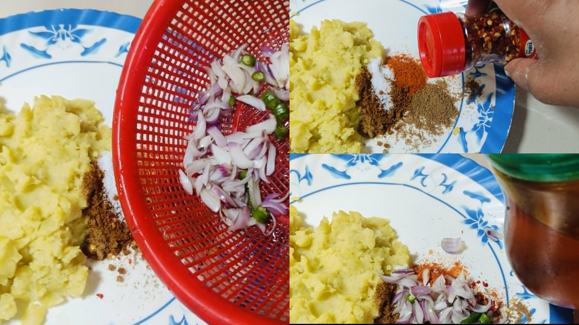 🍘To make potato paratha, I first boiled the potatoes well, then peeled them and mashed them well.