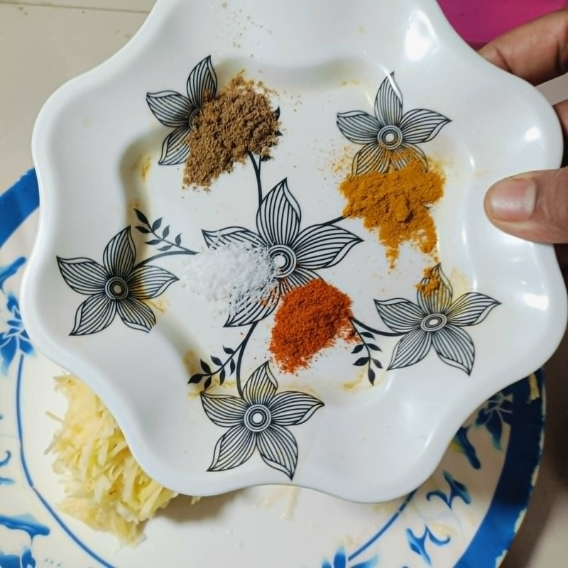 🥔Then I will add all the powdered spices here.