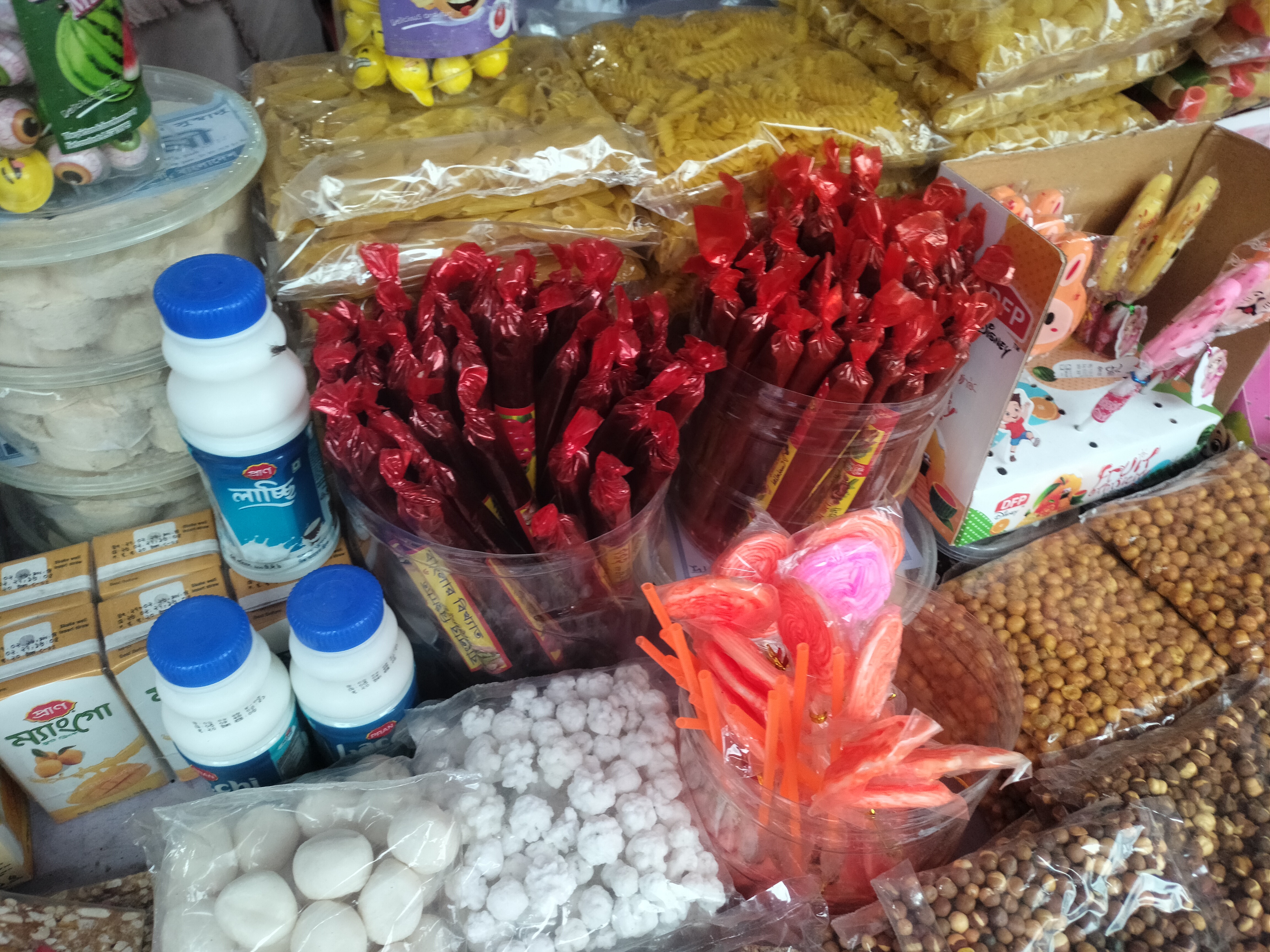 This shop sells various kinds of things. Only food items are sold here. And there are many things among the food items here. All dry foods are sold here. This shop has various kinds of nuts, chanachur, corn, pasta, boots, dal, chips, chocolate, pickles, and many other food items. Actually, I can't remember the names of so many food items now. But we are all very familiar with each food. Because here you can find many such foods that we used to eat as children.