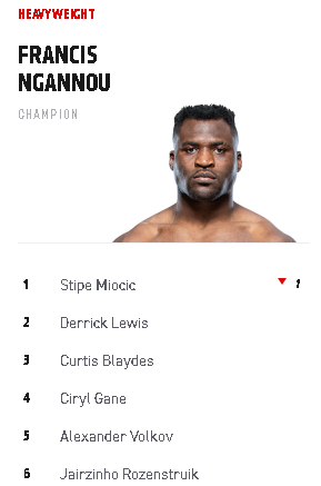 But what about Blaydes and Lewis? Has their time not come? What about a Stipe rematch? A lot of champs get at least one of those before they get sent out to pasture but I doubt such an honor will be extended to him despite the fact that he has beaten almost all the other guys in the list, including the current champion.