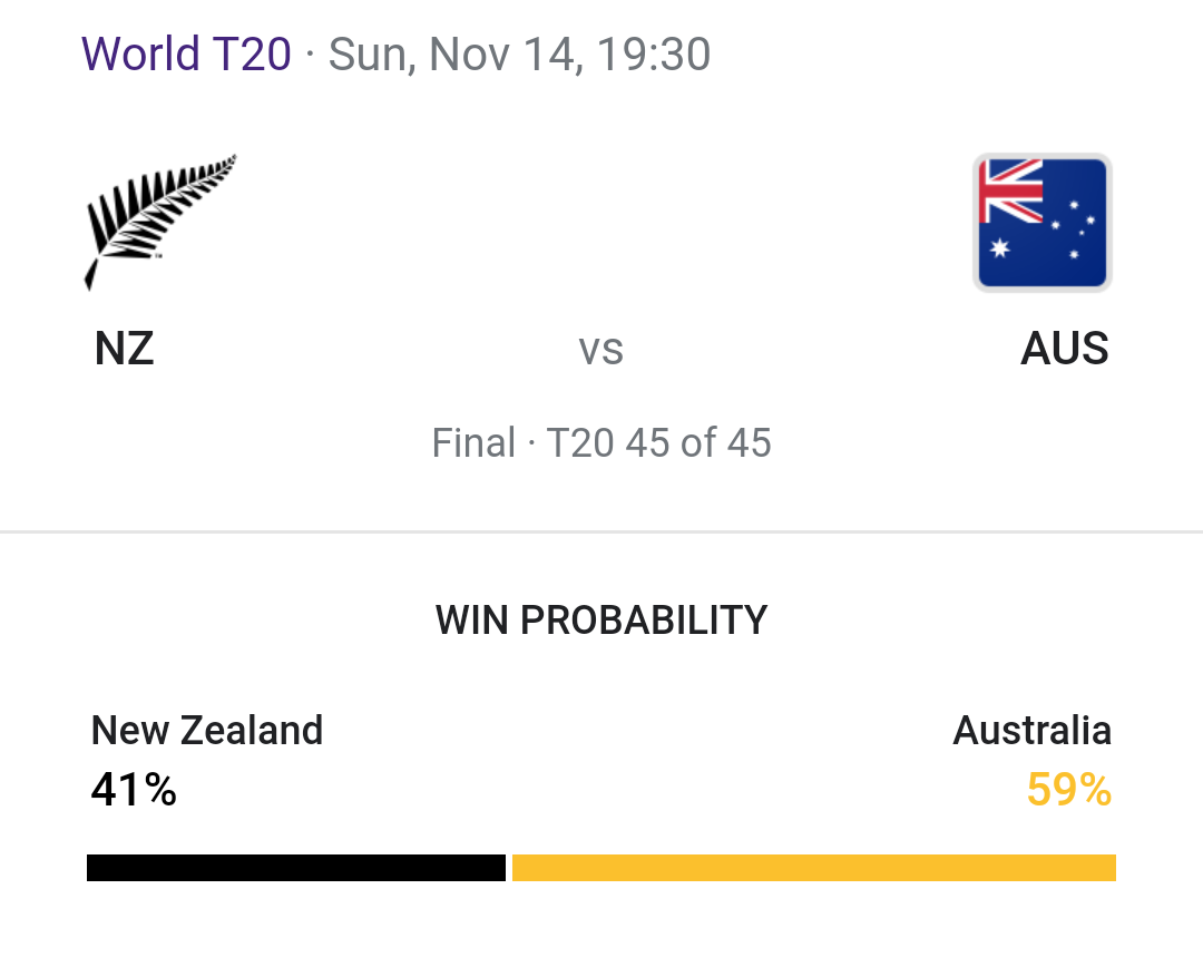 මේ පාර T20 ලෝක කුසලානේ Semi-Finals තරග දෙකම දැන් ඉවරයි. ඒ අනුව නවසීලන්තය සහ ඔස්ට්රේලියාව මේවර T20 ලෝක කුසලානයේ අවසාන මහා තරගය සදහා අවසානයේදි සුදුසුකම් ලැබුවා. ඒ අනුව නොවැම්බර් 14 වෙනිදා රාත්රි 7.30ට ඩුබායි ජාත්යන්තර ක්රිකට් ක්රීඩාංගණයේදි අවසාන මහා තරගය පැවැත්වීමට නියමිතයි. 2015 පන්දුවාර 50 ලෝක කුසලානයෙන් පසුව 2021 T20 ලෝක කුසලාන අවසාන මහා තරගයේදි තමයි මේ කණ්ඩායම් දෙක වසර 06කට පසුව නැවතත් ලෝක කුසලානයකදි මුණ ගැහෙන්නේ. 2015 දී ඔස්ට්රේලියාව දිනපු නිසා පොතේ හැටියට සමහර විට මේ පාර T20 ලෝක කුසලානේ නවසීලන්තය දිනයි.
