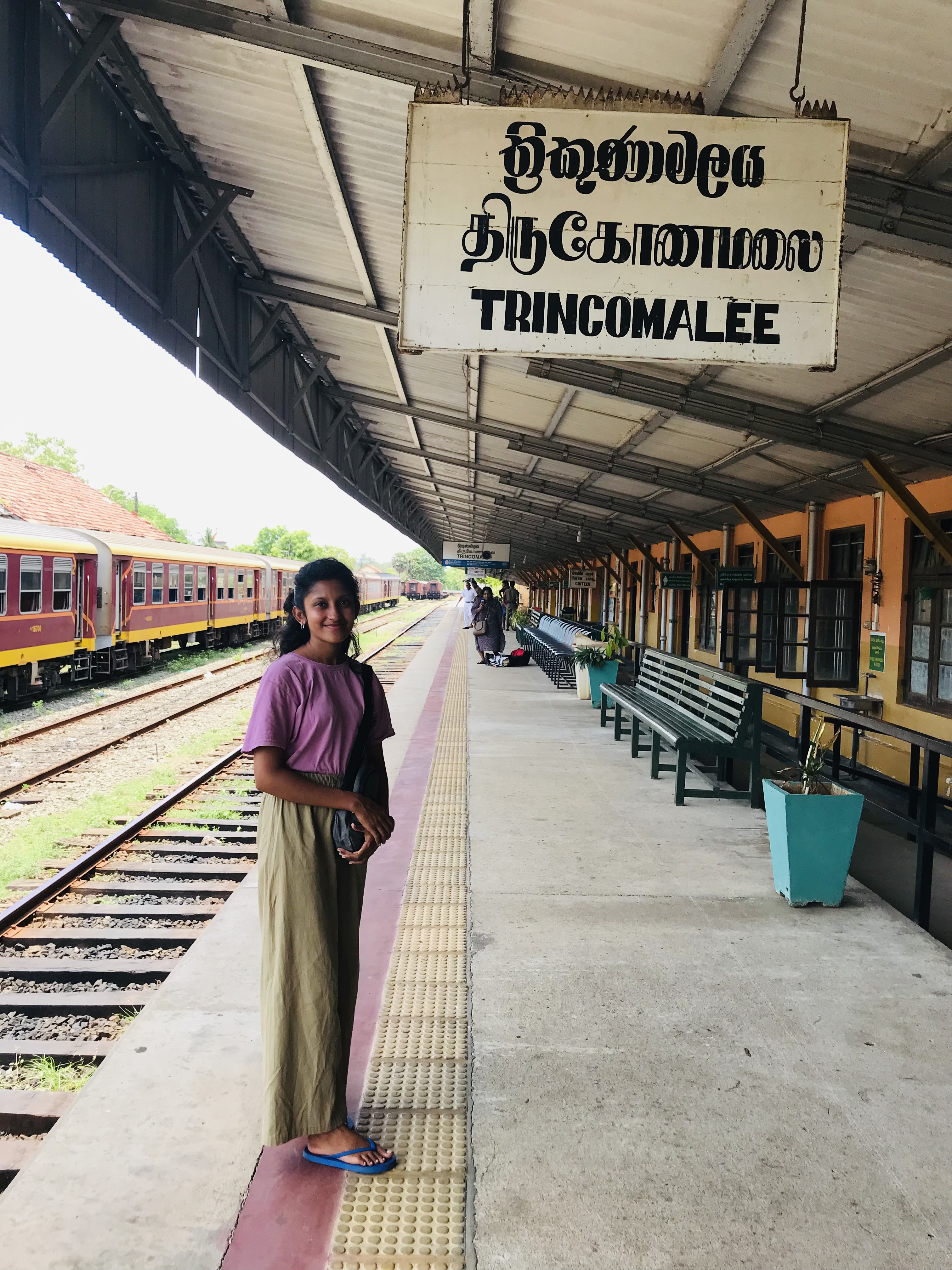 විටින් විට coffee, තේ වගේ දේවල් train එකේ විකුණනවා. ඒක යන අයට පහසුවක්. මොකද ඒක සෑහෙන්න දිග දුම්රිය ගමනක්. යනවා යනවා ඉවරයක් නෑ කියලා තමයි හිතෙන්නෙ. ඉතින් ඒ යෑම ඉවර වෙලා අපි ත්රිකුණාමලයට යනකොට උදේ 7.00 යි. Railway staion එකේ ගහල තියෙන ත්රිකුණාමලය කියලා ගහල තියෙන board එක දැක්කම හිත සතුටින් පිරිලා යනවා!
