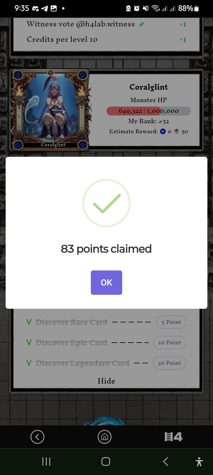 Now I am back on my home page. After coming here I noticed that there are some points waiting for me. I quickly claimed 83 points.