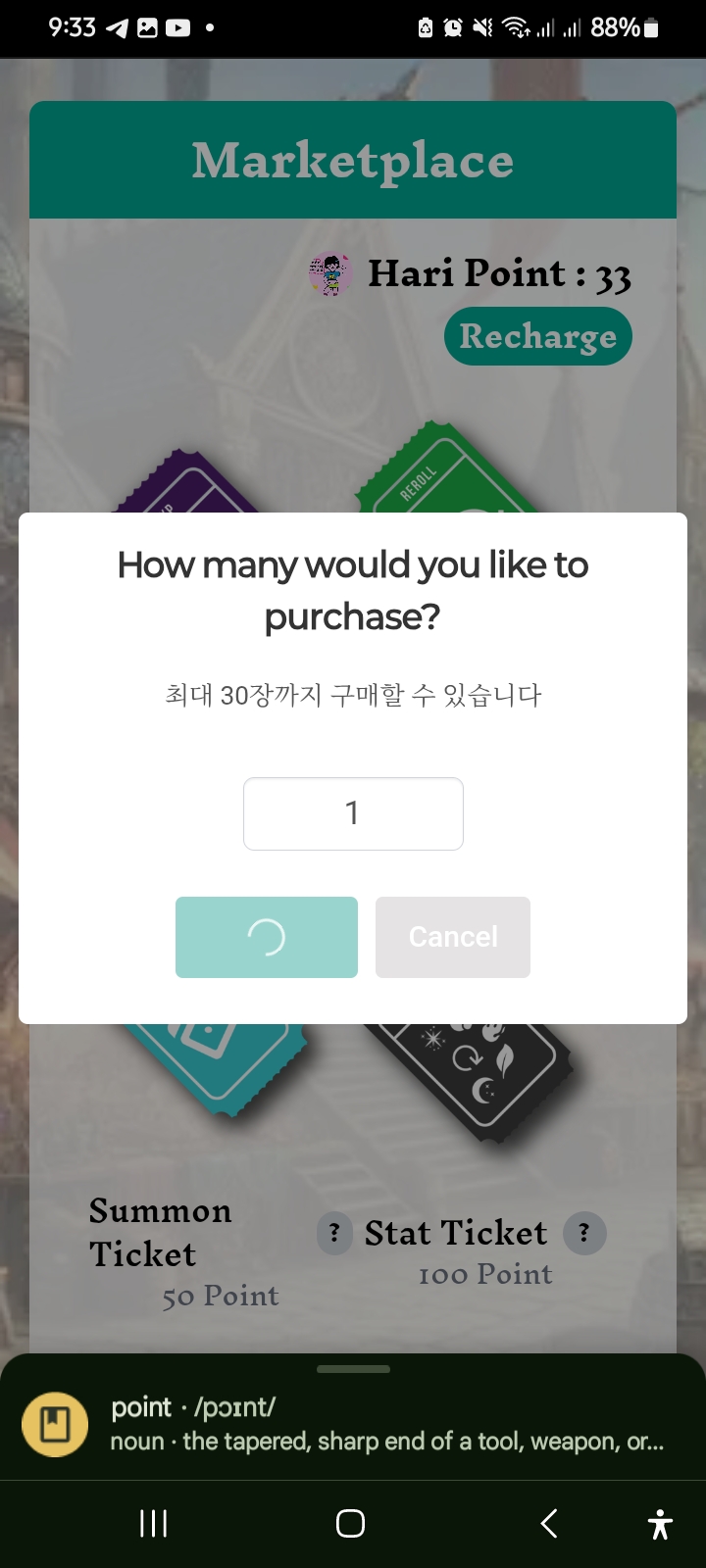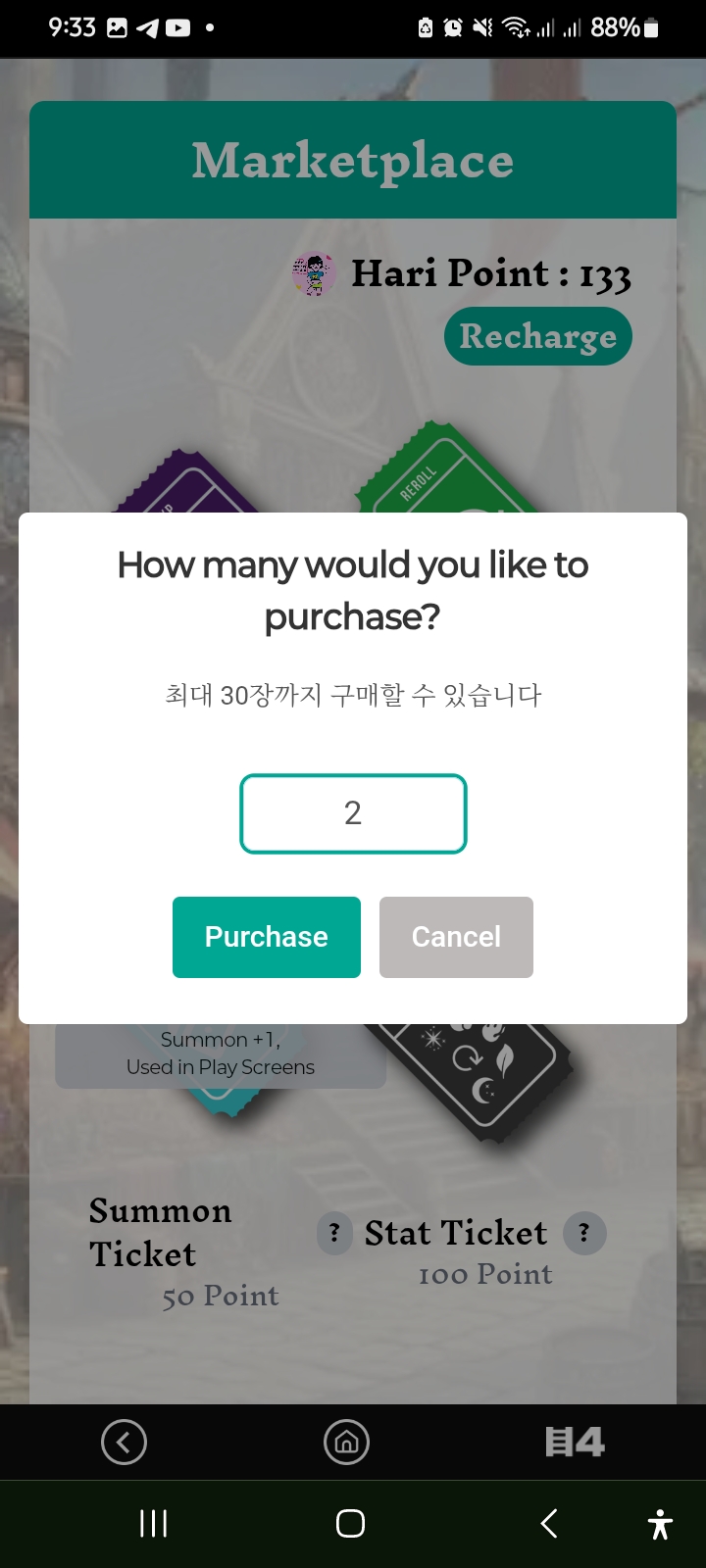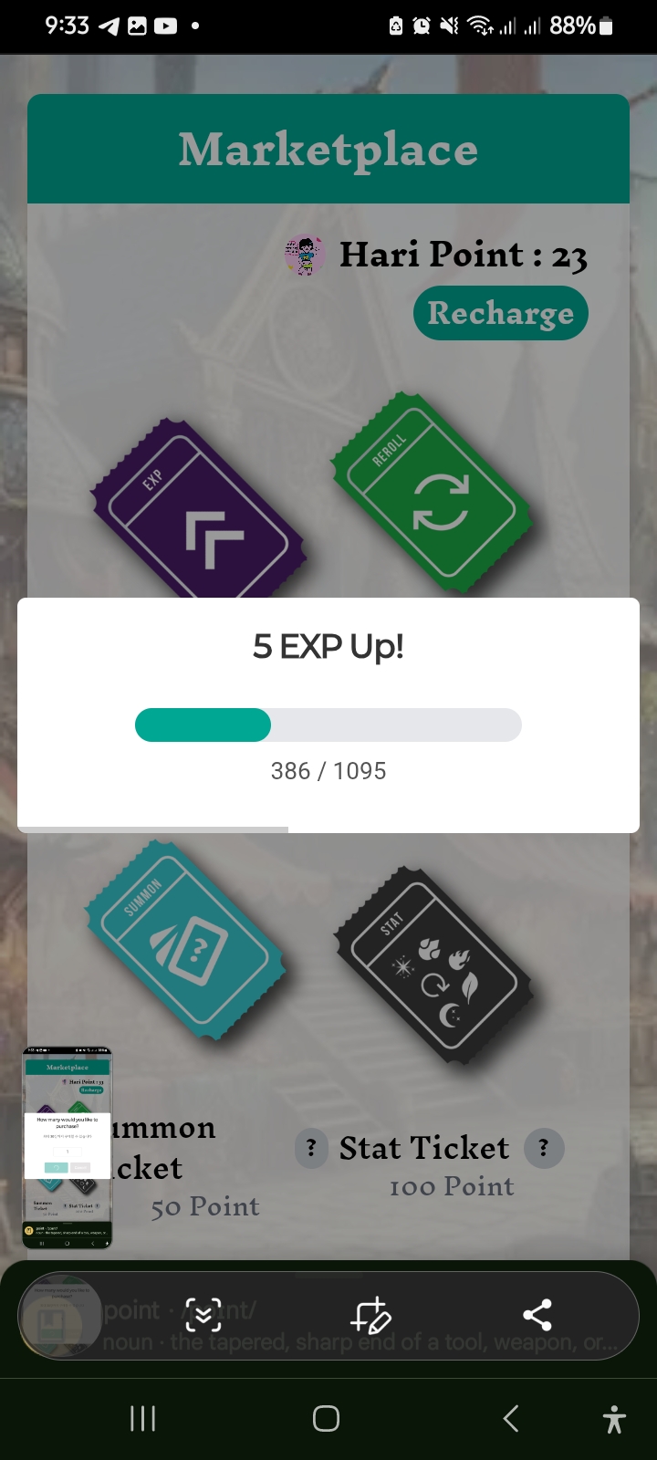 Now I went to the market option. After going to the market option, I bought some cards. I bought summon tickets specifically for attacking and I bought exp tickets. After buying tickets, I went back to the play option.