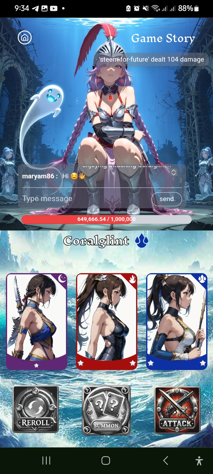 Now I will make the third attack last. To make the third attack I clicked on the summon ticket. The card arrived in front of me and I decided to attack. Anyway, I finally created a nice process to achieve 104 damage. And thus my free cards in the first position are over.